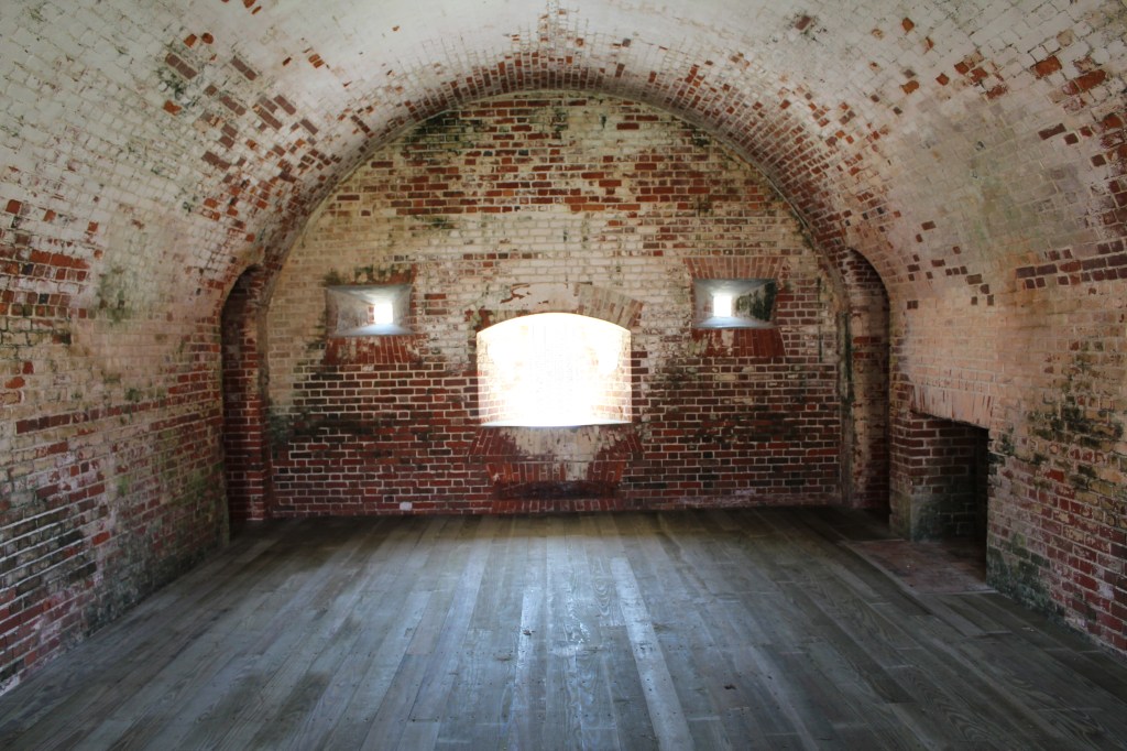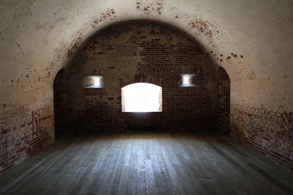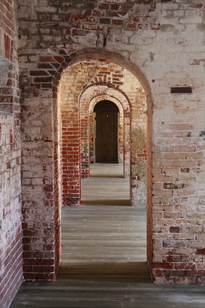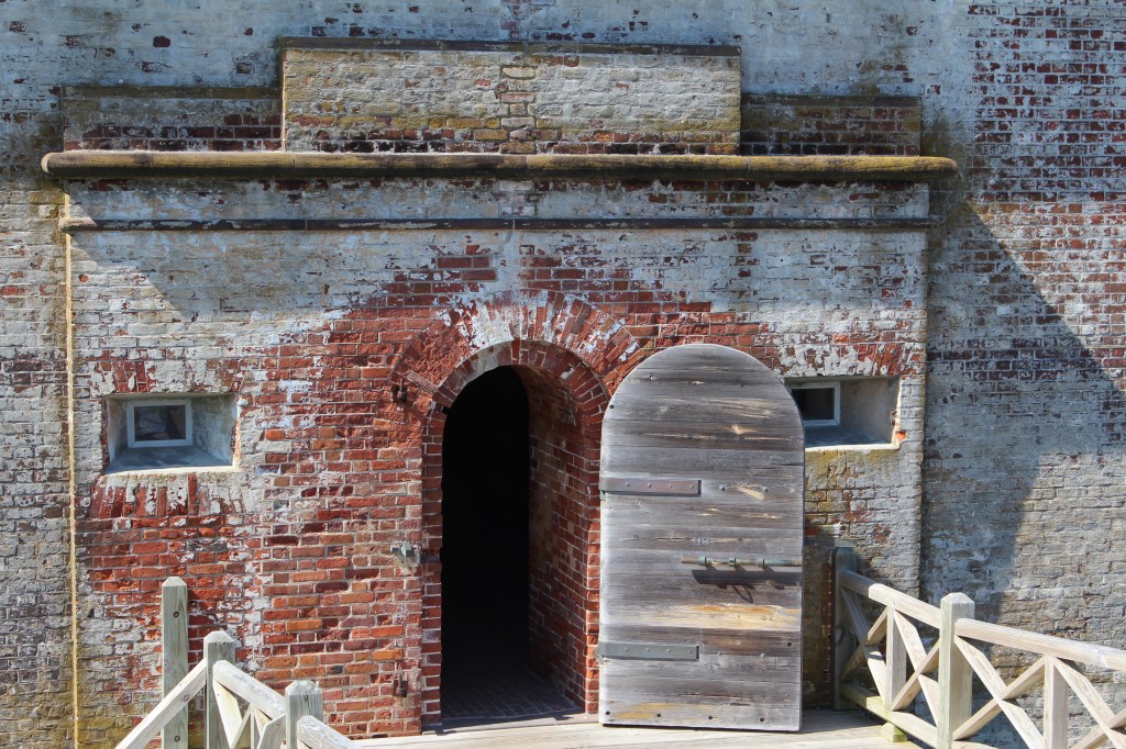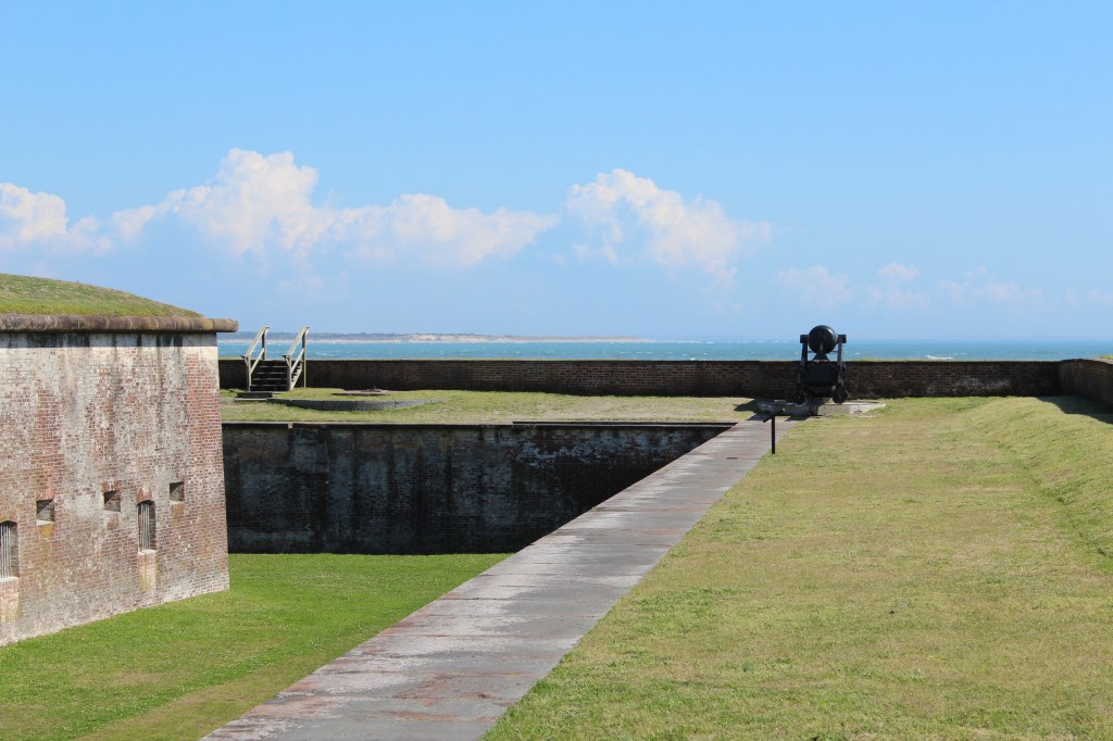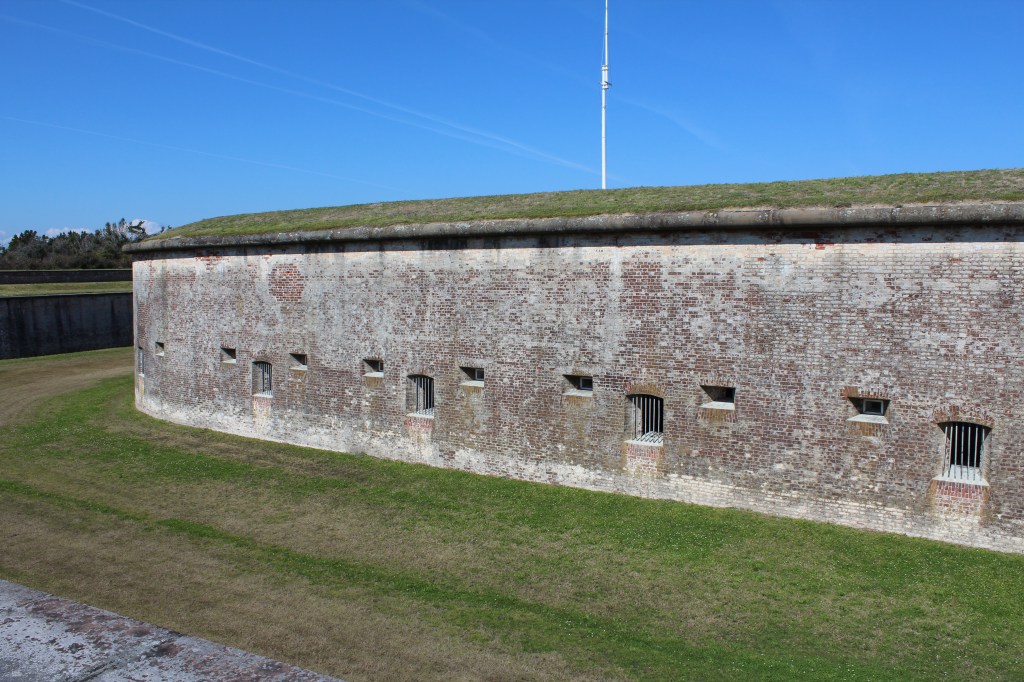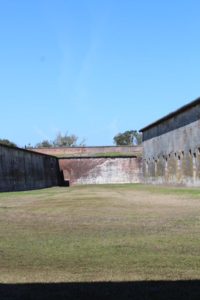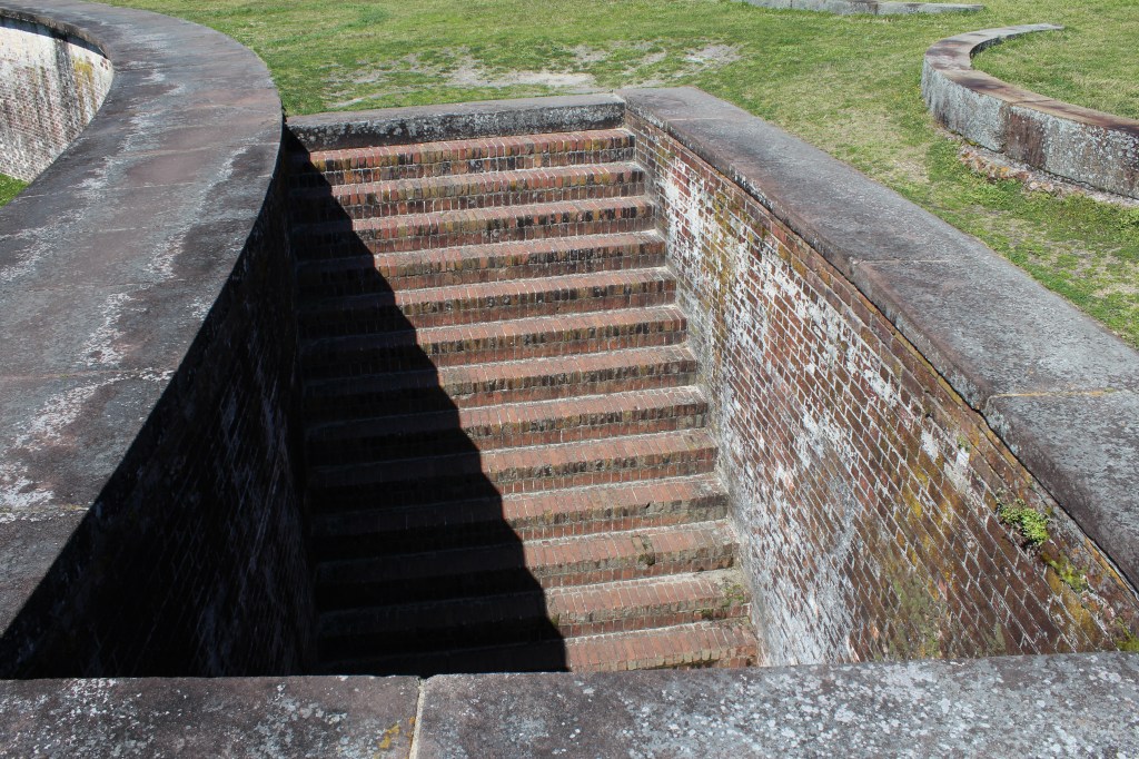 At this point, our hero resumed writing in the first person. The next day, I continued down the coast to Fort Macon State Park, an old coastal defense fort that is NOT located in Georgia. Over the last half century, I have visited many historic forts; Fort Macon quickly established itself as one of my favorites, partly because it has not given in to the modern idea of keeping tourists safe. (If there was one thing I hated most during my years as a ride operator, it was keeping tourists safe!) Dig this crazy joint: