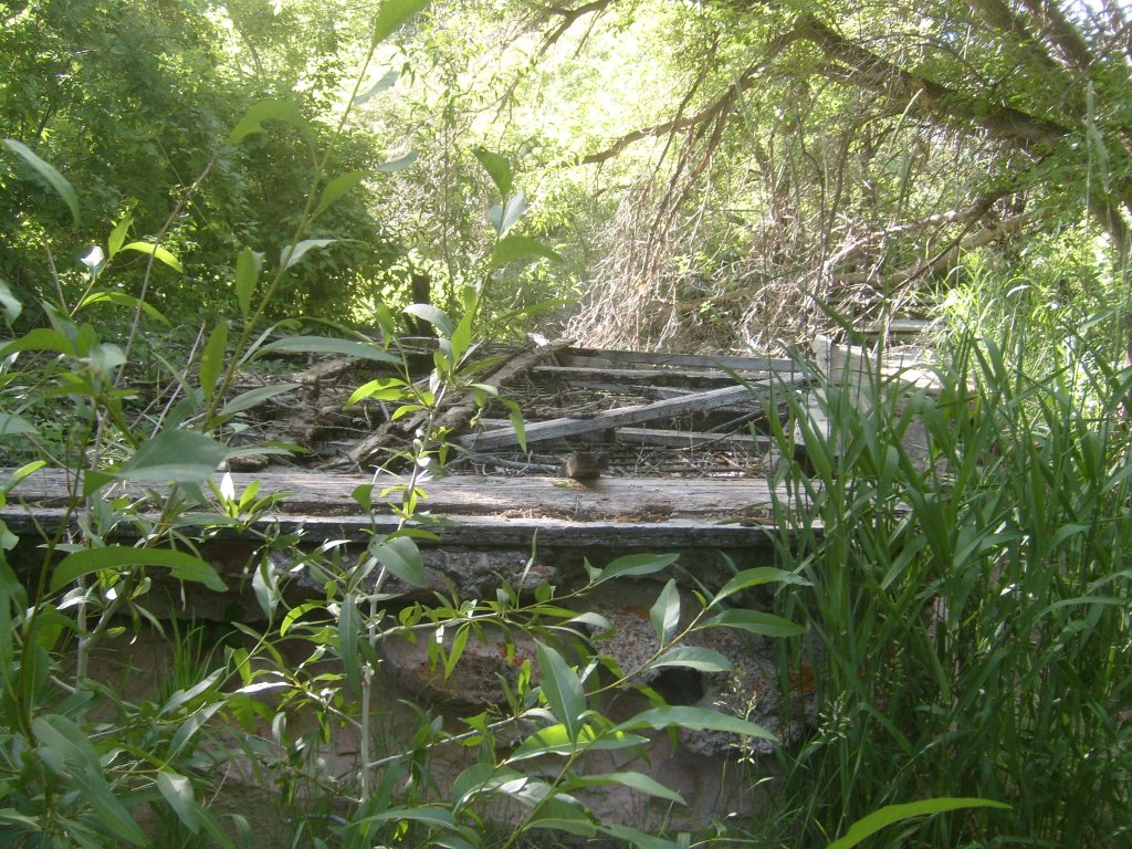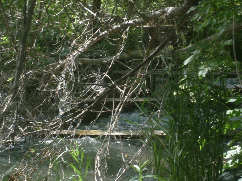 Well, it is and it isn’t. Y’see, in the very early 20th century, a small hydroelectric power plant was built near the falls. A structure was built at the top of the falls to divert water from Charlie to the hydro plant. Being such a small plant, it didn’t need an awful lot of water. So, this pipe was put in to carry ‘excess’ water to where it would previously have flowed naturally. And now that the power plant is long gone, all of the water that reaches the diversionary structure is ‘excess’ water, so it all goes over the falls just as it would have if the diversion had never been built. It’s just taking a less natural route to get there. Let’s have a closer look: