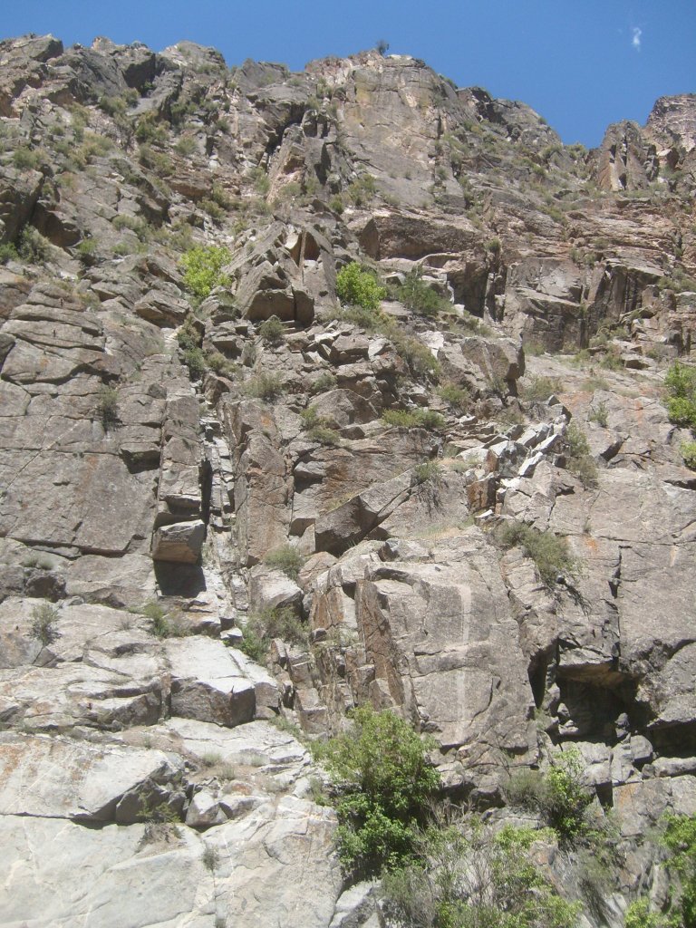 According to my advance research, there are two roads going to the top of this plateau. One of them is called JQS Trail. Everything I could find about this route made it sound like it would not be an option for anything on four wheels, except maybe Bigfoot (the monster truck, not the monster DRIVING a truck). Then I found this video of a guy (not a sasquatch) navigating a portion of JQS Trail on two wheels, and I was convinced not to try it. I’m pretty sure this is the road where Arlo Guthrie wrote his “Motorcycle Song“. The other road to the top is called Cow Creek Road. This one has mixed reviews. They all say a high-clearance and/or four-wheel drive vehicle is “recommended” but some of the reviews implied it can be done in a standard passenger car as long as the road isn’t wet. I have a long history of driving sedans onto roads where a high-clearance and/or four-wheel drive vehicle is “recommended”, so I decided to give Cow Creek a try. After only about a quarter of a mile, I decided to back out while I still could. It’s not that the road is too rough or too steep. It’s just too narrow. It’s definitely only wide enough for one vehicle, and there are seriously huge entanglements of bushes on both sides. If I were to meet anyone coming the other direction, one of us would have to back up – possibly for quite some distance. So, I abandoned Roan Plateau, and went straight into what I had planned for the next day.