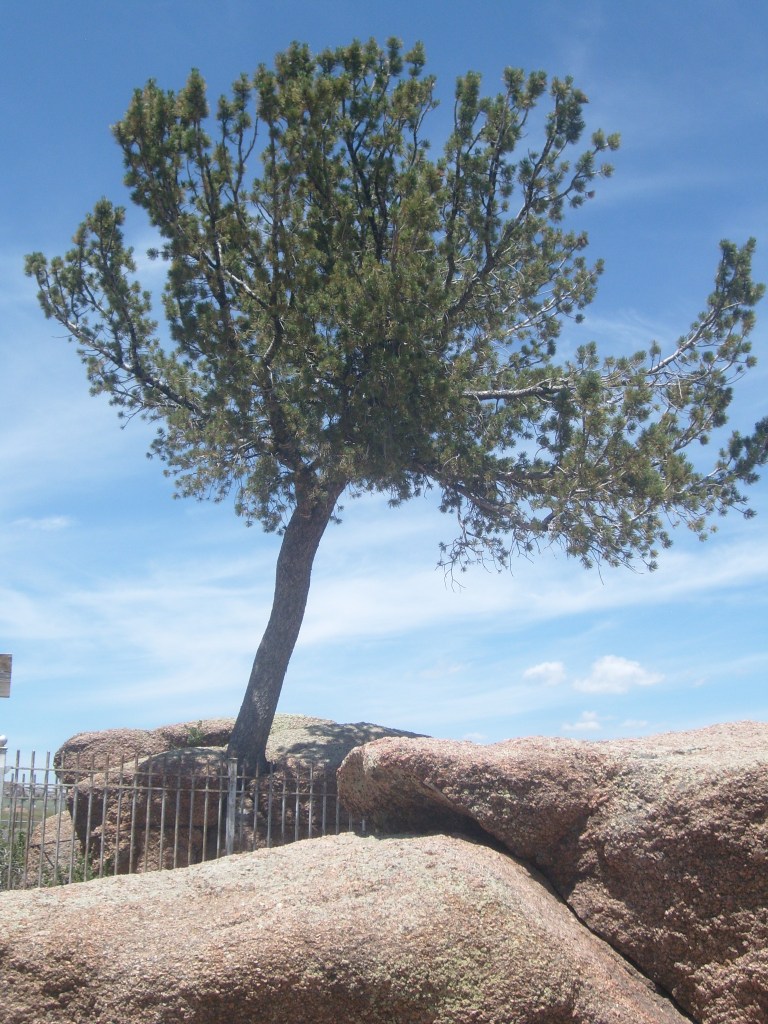 Regular readers may have noticed I have an obsession with what I call “heroic trees” – trees that have successfully established themselves in places where you wouldn’t expect a tree to succeed. In other words, trees that grow out of solid rock. But where and when did this obsession begin? It began when I was in high school. Well, actually, it began when I was OUT of high school: summer vacation. I was on a family trip that involved driving across southern Wyoming, and we stopped to see this “point of interest” located in the median strip of Interstate 80: