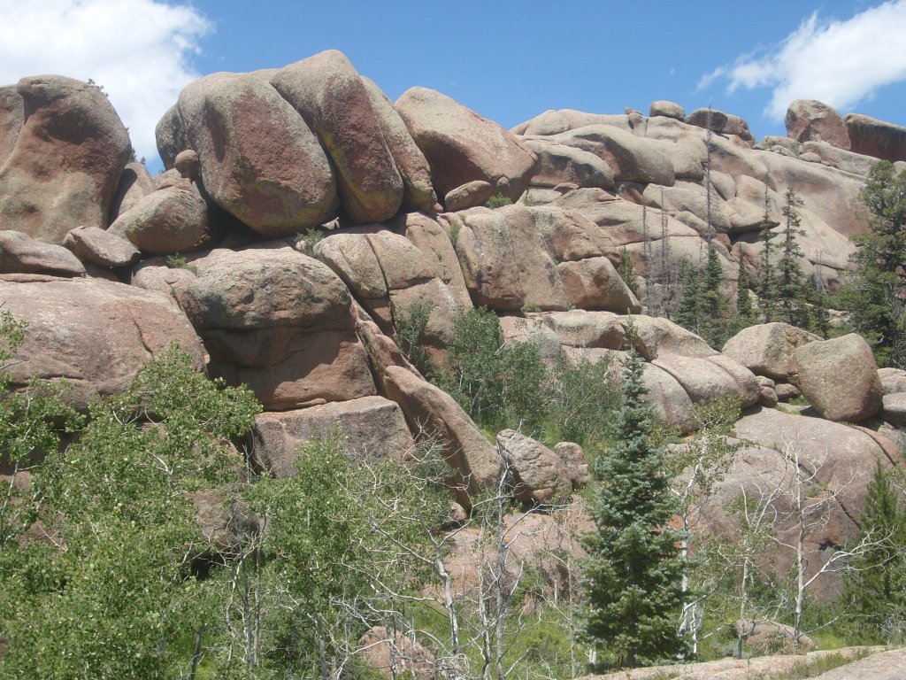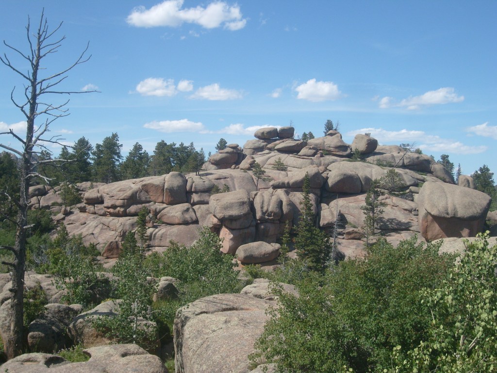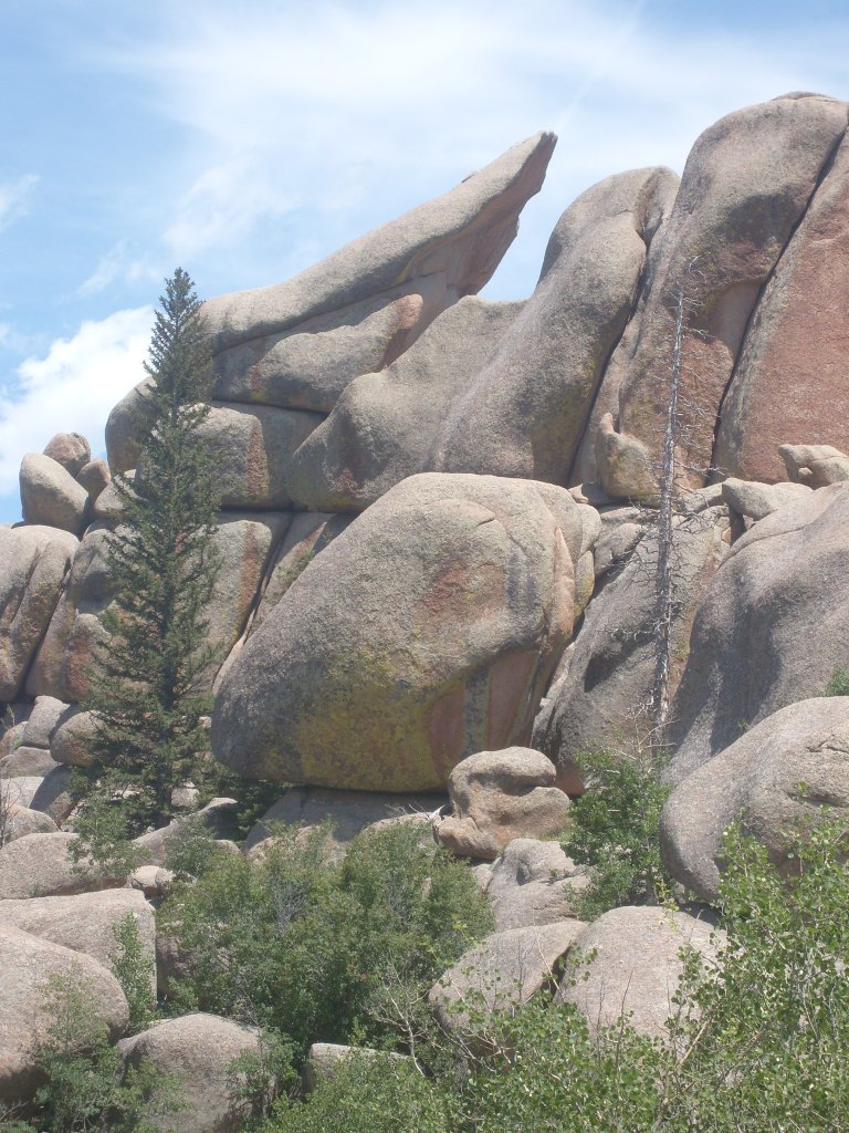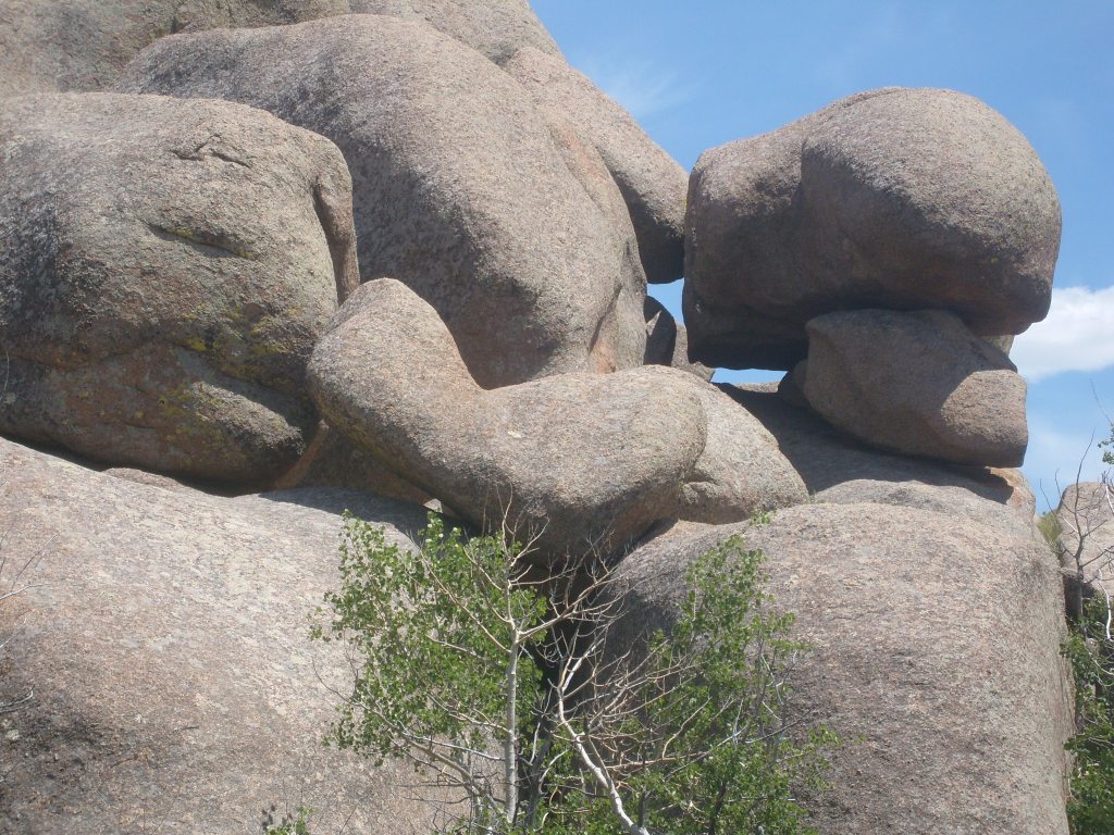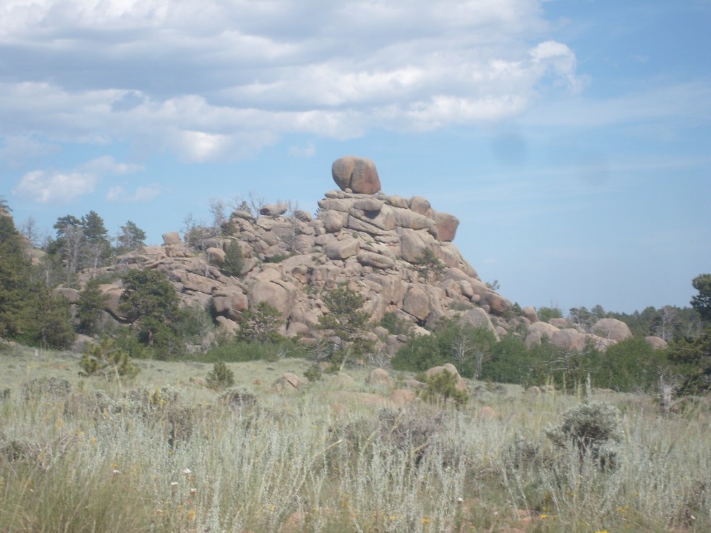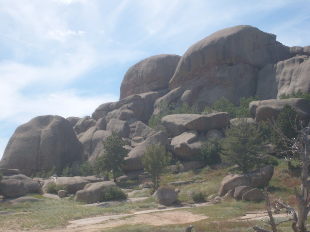 Time now for the meat of Day 1. Two miles northeast of Ames Monument and two miles northwest of the original heroic tree, there stands a series of massive rock formations called Vedauwoo. For a mere five bucks, you can go in and see these formations up close, or even climb them. Or you can continue to follow U.S. Forest Service Road 700 as it meanders through 6 or 7 miles of smaller outcroppings collectively known as Devil’s Playground, for free. I’m not a technical rock climber, so I opted for Devil’s Playground. Here’s some of what I saw along the way: