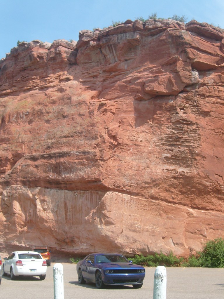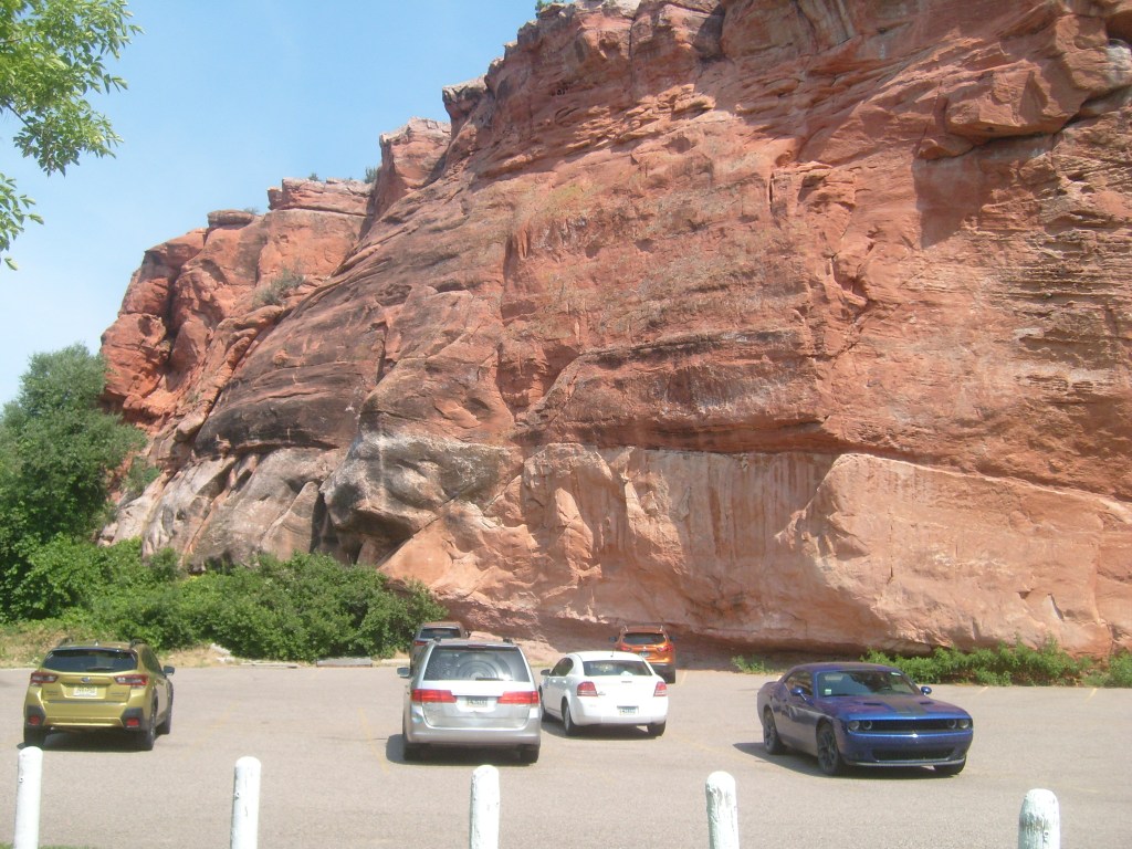 If you decide to visit this place yourself, on a hot day, don’t park in the lot at the end of the entrance road like I did. The road is a one-way loop at that point. If you make the turn to start heading back towards the entrance, you will very shortly encounter some very well-shaded parking spaces. By the time I left, the heat was already bothering me, and getting into the hot car didn’t help. So, I cranked up the AC and headed for Register Cliff Historic Site.