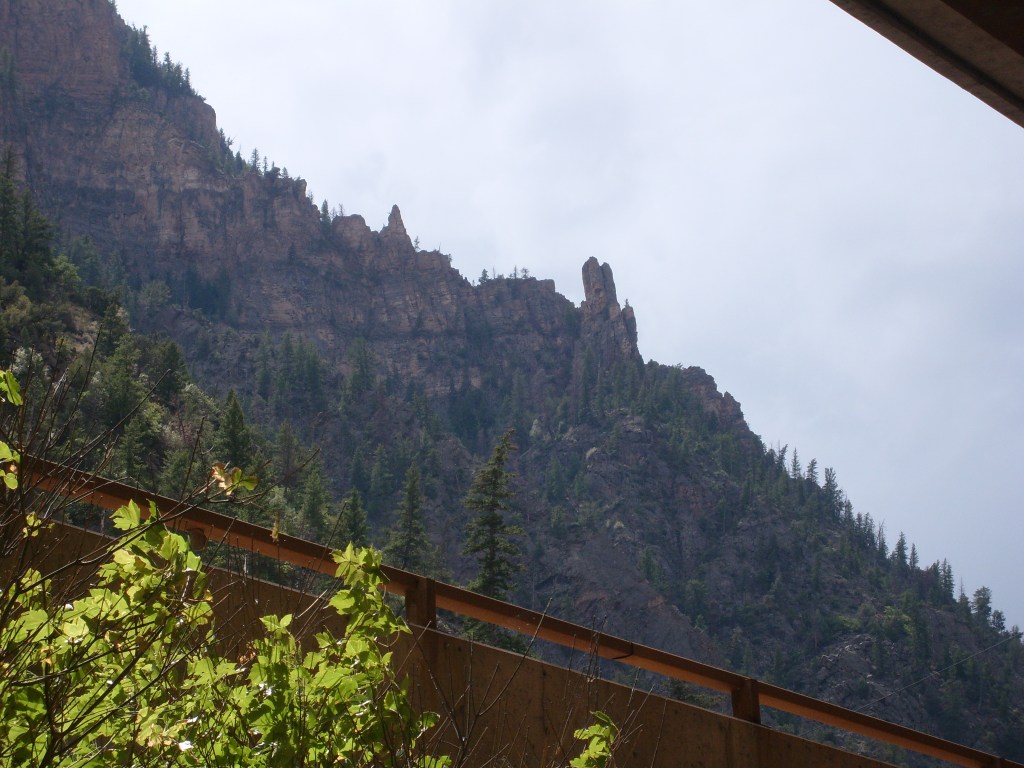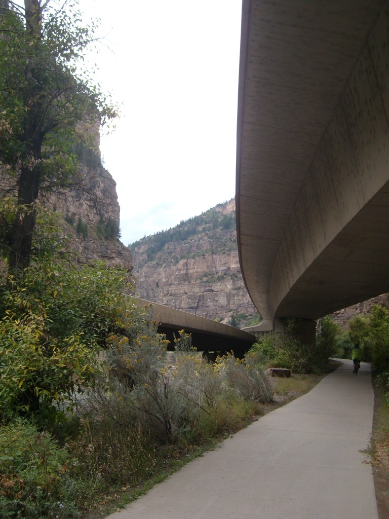 The next day, I did something I’d been wanting to do for over 20 years: I rode the bike trail that runs through Glenwood Canyon. Unfortunately, it turned out to be a rainy and relatively cold day, so I rushed through the canyon, not stopping to get many pictures. But here are the few I did get: