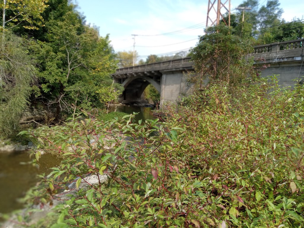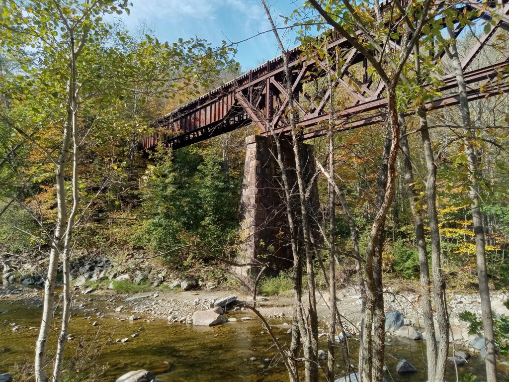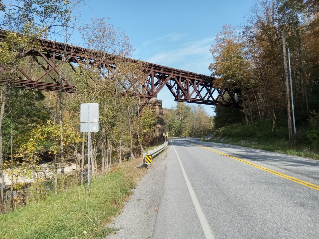 Day 2: After yesterday’s exhausting hike / mosquito-splatting workout, I slept for nearly nine hours! So, this seemed like a good day to go to the American Precision Museum, which I knew wouldn’t take nearly a full day. As usual, I didn’t bring my camera to the museum. So when I did some lolly-gaggin’ along the way, I took just a few pictures, using my phone. This includes a stop to check out this funky, multi-element railroad bridge: