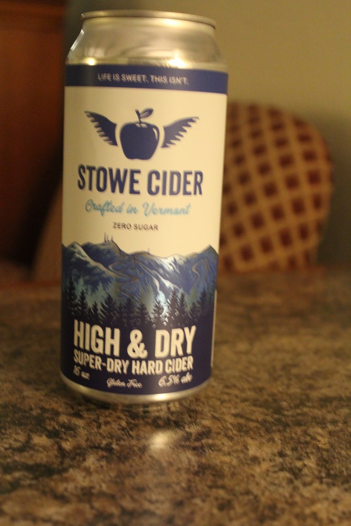 When I completed my previous post (in the evening of Day Four), I was fully caught up with my Trip Reports. It’s a bit unusual for me to still be on task this far into a trip, and I decided to celebrate by sampling a local hard cider, which was on my list of things to do on this trip anyway. So, I wandered into the nearest grocery store and perused their selection. I ended up selecting a variety called “High & Dry”, from Stowe Ciders (pictured below). This was quite a good cider, especially its finish. It reminded me of some of the “dark & dry” ciders that I was drinking 15 or 20 years ago. Sadly, no one seems to make dark & dry ciders any more.