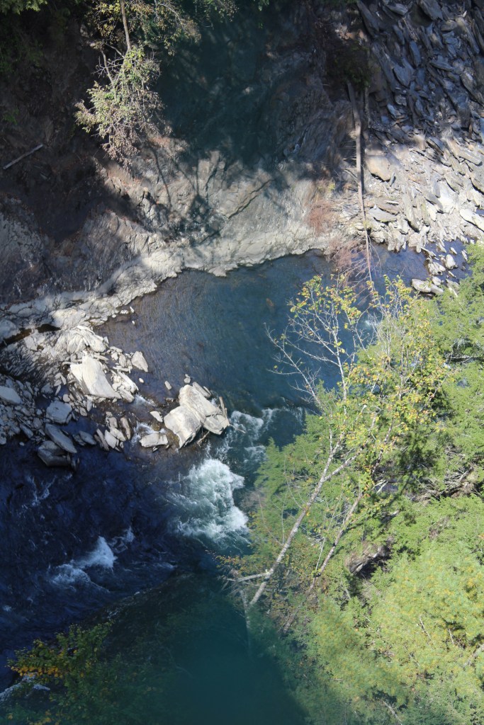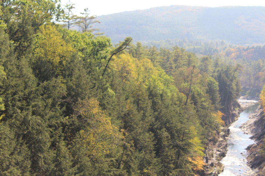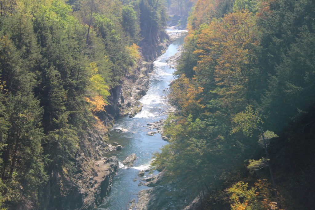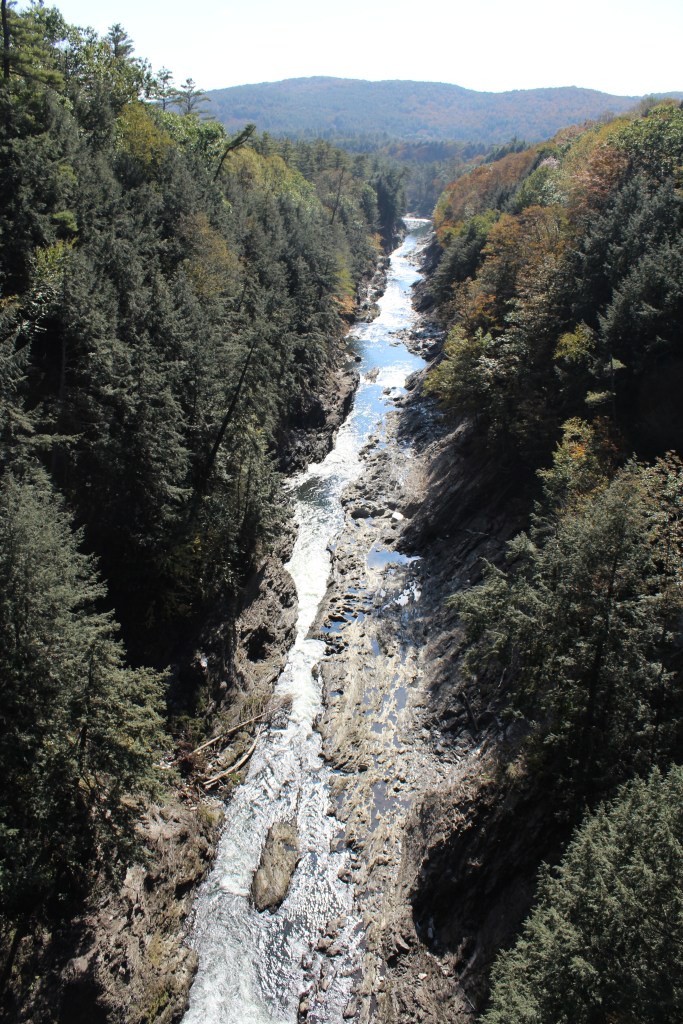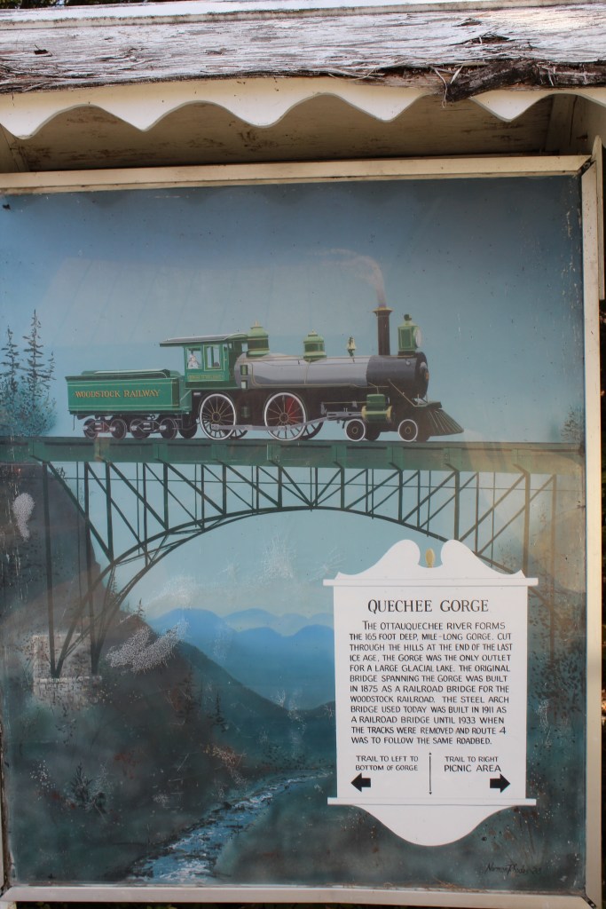 But then, I happened across something I had not expected: the highway I was on (U.S. 4) goes right over the deepest part of Quechee Gorge. I had never even heard of this gorge, much less planned on visiting it. But as I drove over it, I knew I must stop and check it out. Now you can, too:
