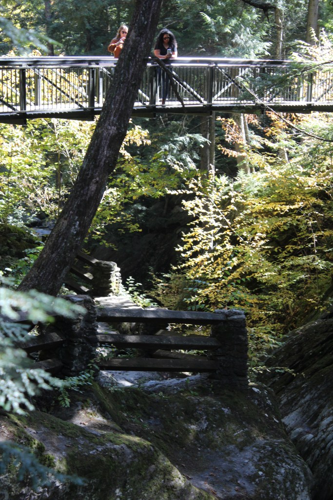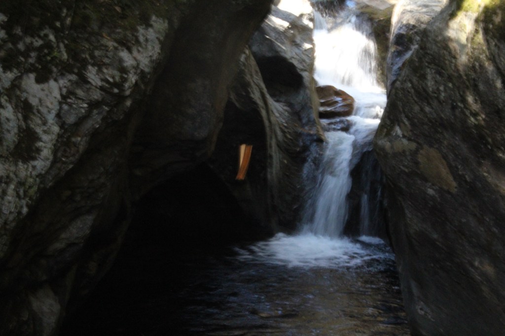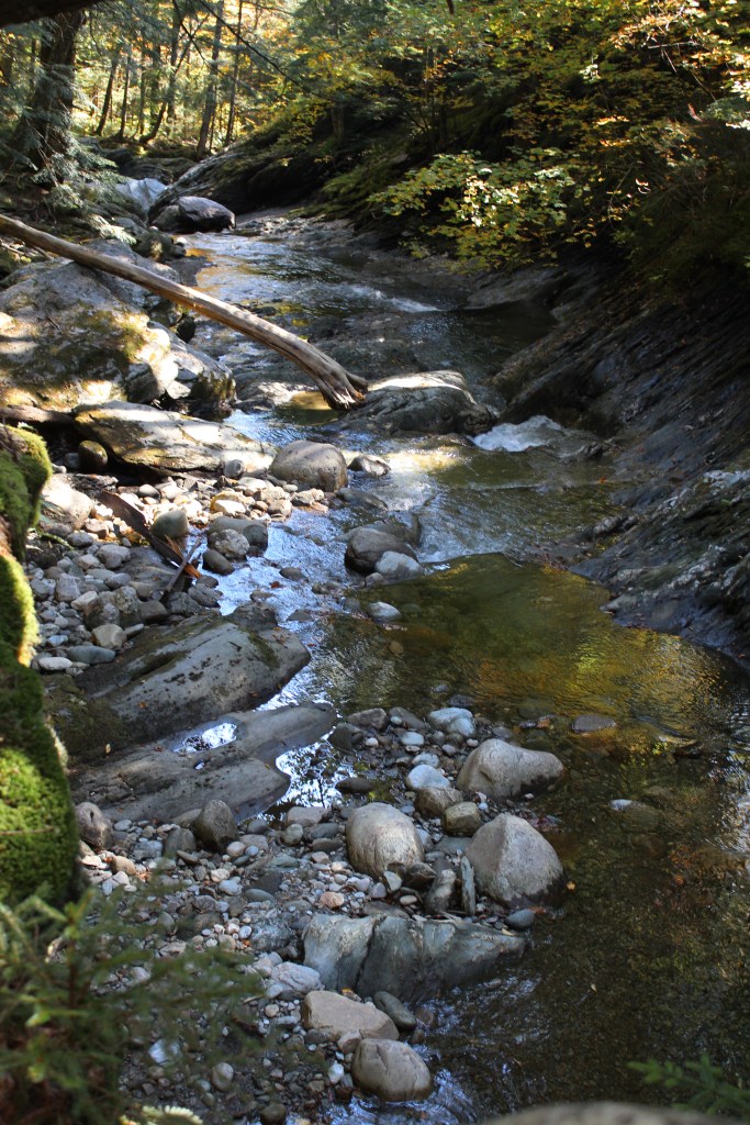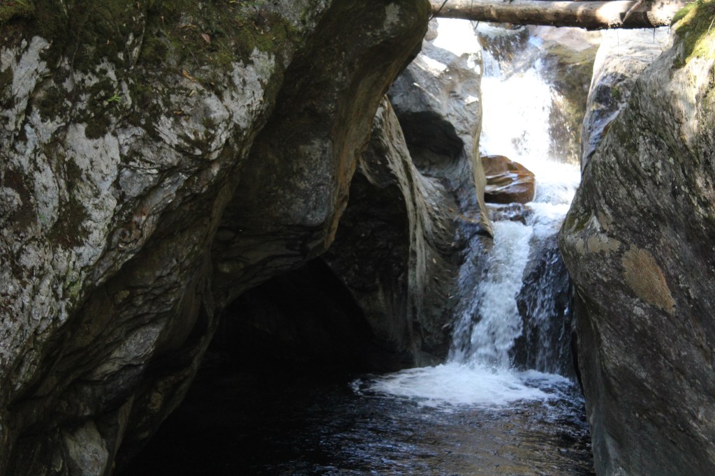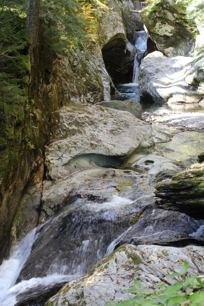 I had intended to continue north on state highway 100, with my next formal stop being Moss Glen Falls. However, soon after leaving Rochester, I came to the town of Hancock. Here I was confronted with a sign pointing to “Scenic” state highway 125. Now, nearly every mile of every highway I’ve driven so far in this state has been pretty. So, I wondered, what kind of amazingness might be waiting for me on the one road they actually labeled as Scenic? I was determined to find out. Off I went onto Scenic Vermont 125, leaving highway 100 and Moss Glen Falls behind. The latter turned out not to be a big loss, as I very soon found myself at a place called Texas Falls. And boy howdy, when Texas falls, you do NOT wanna be in the way! ‘Cuz it’s big. Anywhat, here are some pics from the Texas Falls roadside park: