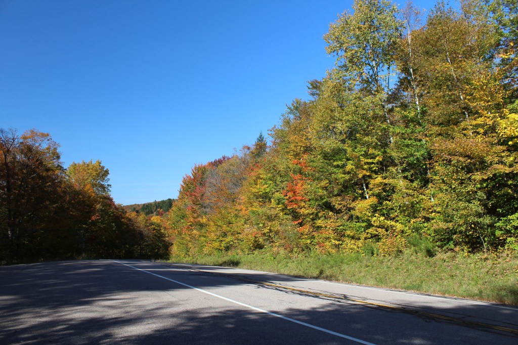 One thing to be prepared for if you ever visit Vermont is road construction. Copious amounts of road construction. Every road that I was on for more than a mile had at least one segment where a lane was closed and they had the “flagmen” out, doing the alternating one-way thing. It’s kind of a nice little break to enjoy the scenery, but I don’t understand how the people who live here can put up with it. But even when there’s no construction going on, traffic is horrendous in a lot of areas. I went through many small towns that had WAY more traffic than I would ever have expected in such places. Maybe that was only because it’s leaf season. I don’t know. In any case, when I finally got to the other end of highway 125, I stopped and attempted to devise a route to meet up with my originally planned route, but further north. I was surprised at how far west I had gone, and to find that I was nowhere near as far north as I had hoped and dreamed. Getting back to my original route would take quite some time, and would result in a long drive back to the hotel. I decided I didn’t want to do that much driving, so I called it a day and headed back to the hotel. Which was right where I had left it.