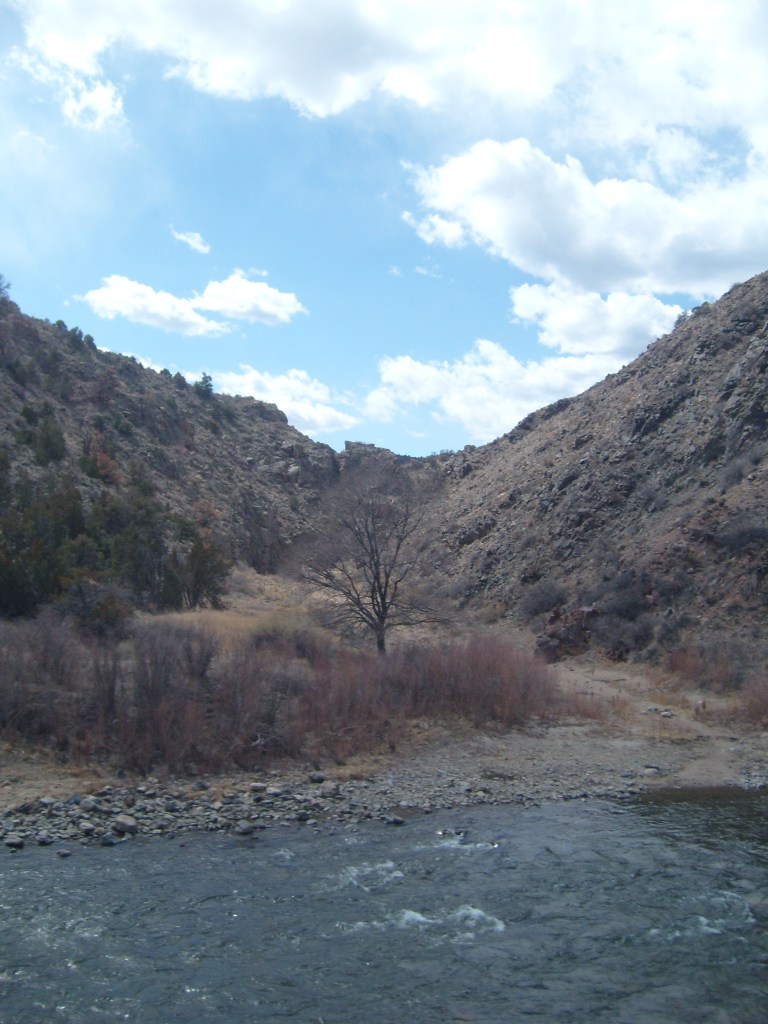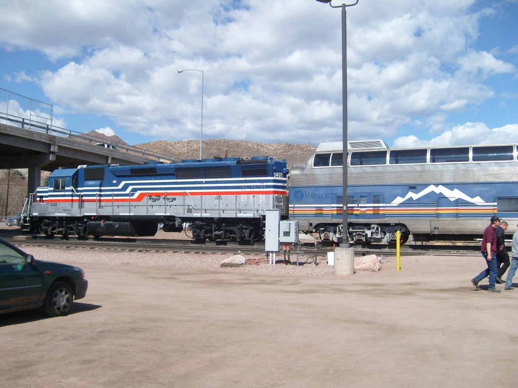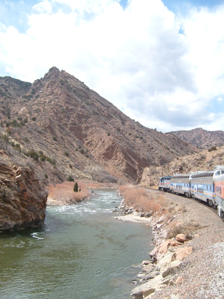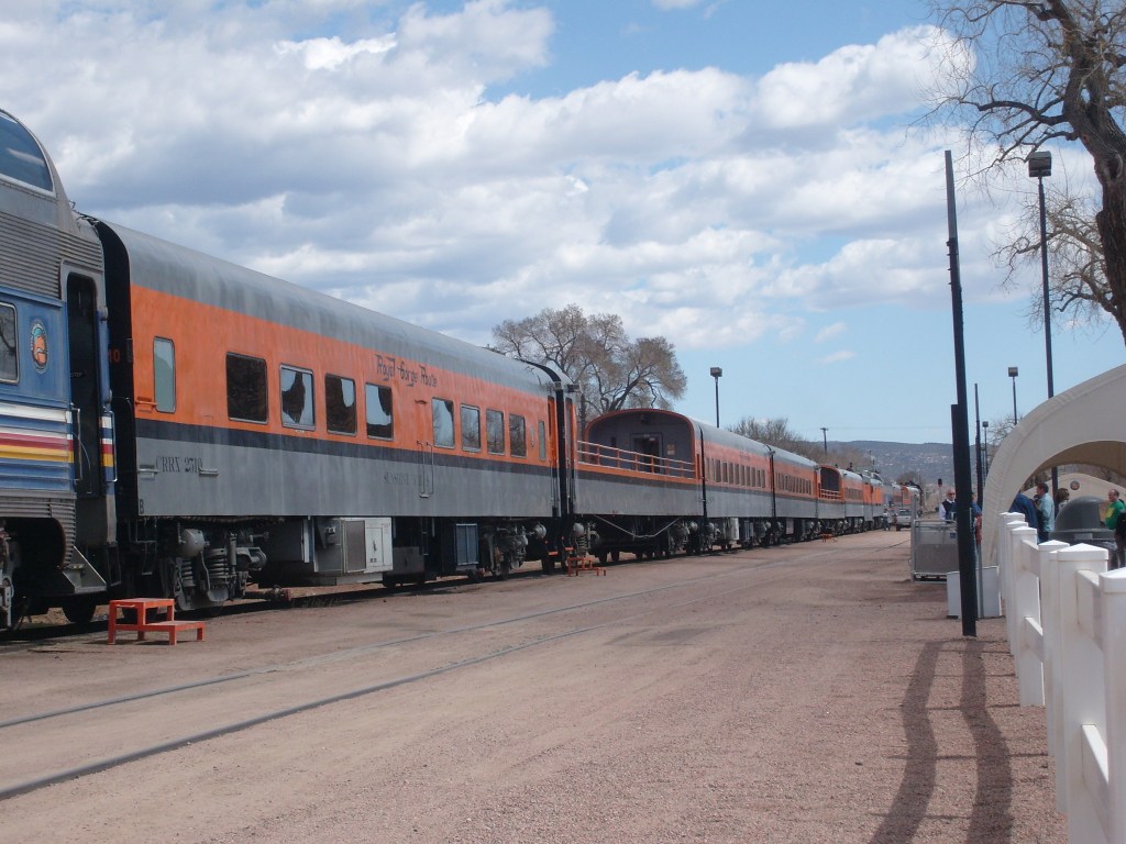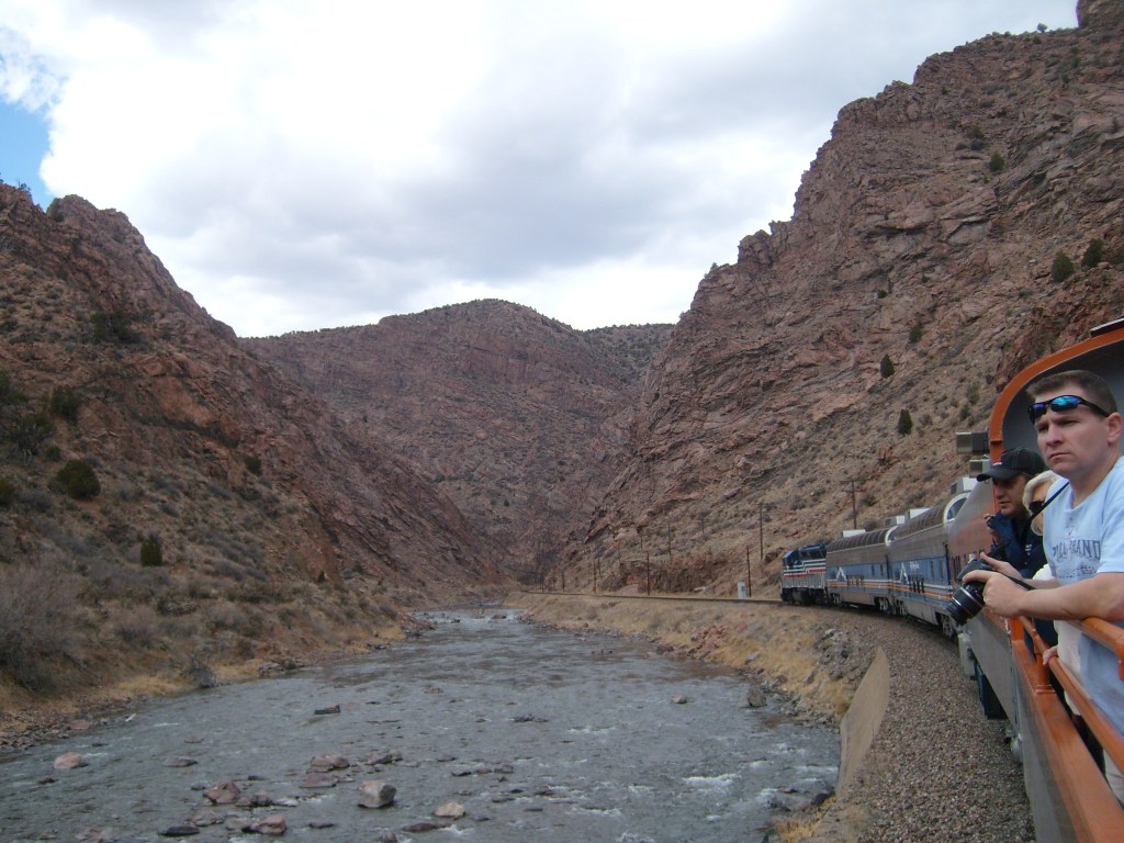 During the Spring of 2013, I took some family for a ride on the Royal Gorge Railroad. The ride begins at the Cañon City, Colorado railroad station. From there, it travels the length of the Gorge (upstream), then reverses direction and comes back down the Gorge. The rail journey ends in the same place it began, which would be here: