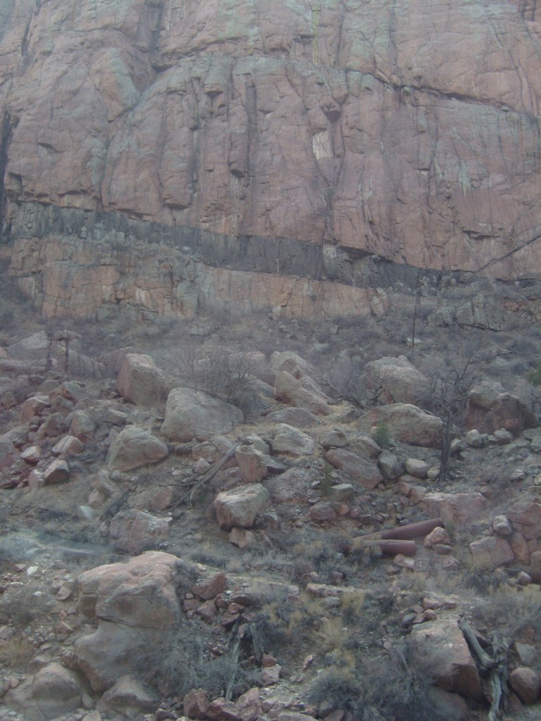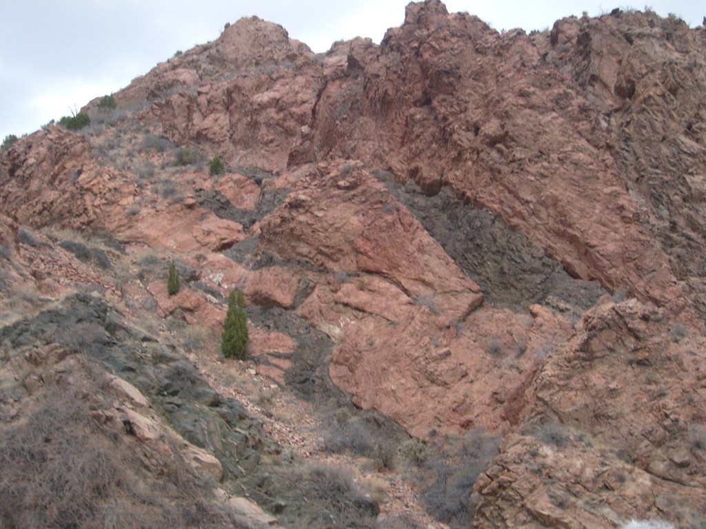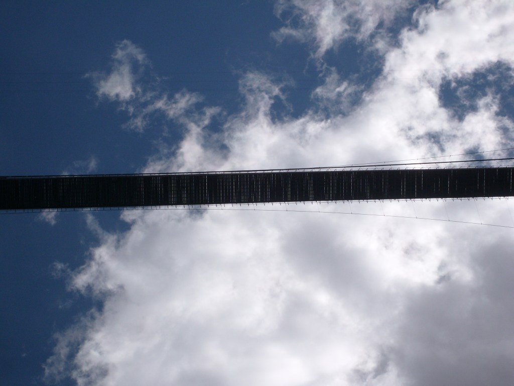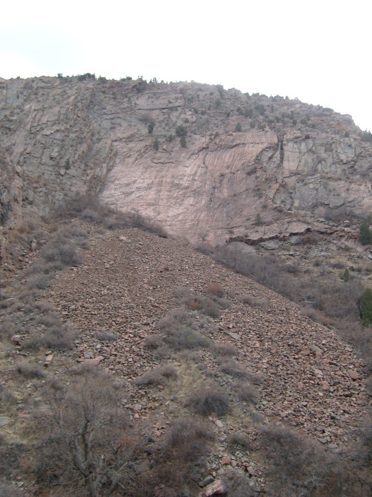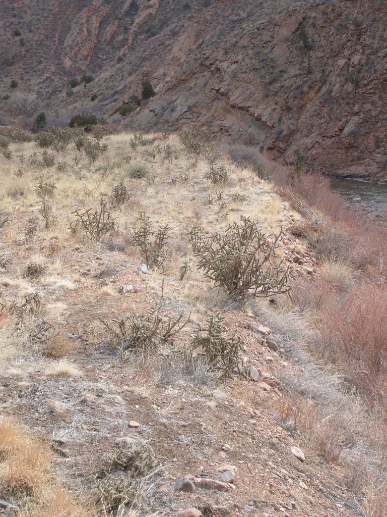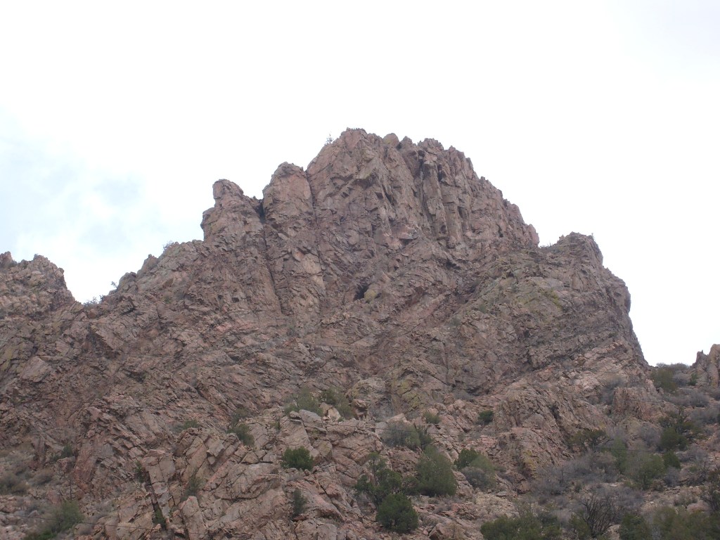 …gave us a better feel for how tight the gorge is in some spots.More of the 19th Century aqueductCurses! Photobombed by the disembodied head of a small child!They got creative with the supports for the railroad line, too.Looking up at Royal Gorge bridge. Yes, the road (deck) is made of planks.This was the world’s highest suspension bridge when built in 1929.More of the old aqueductI’m not sure, but I think this bridge pier was part of the old aqueduct.This appears to be a much more modern aqueduct.Cholla! Yes, there are parts of Colorado that are supposed to be this dry.Crazy cool rock layers in the canyon wallI found these black streaks in the rock to be especially curious.