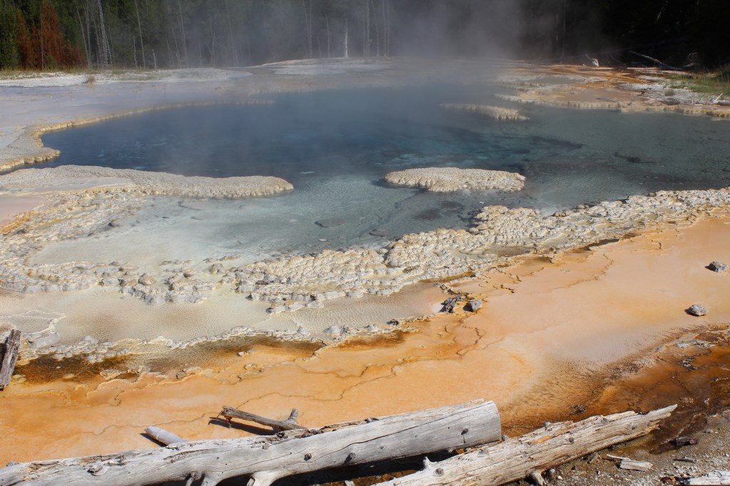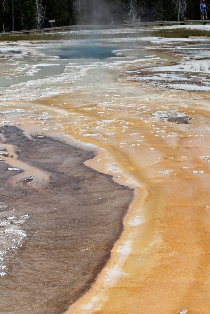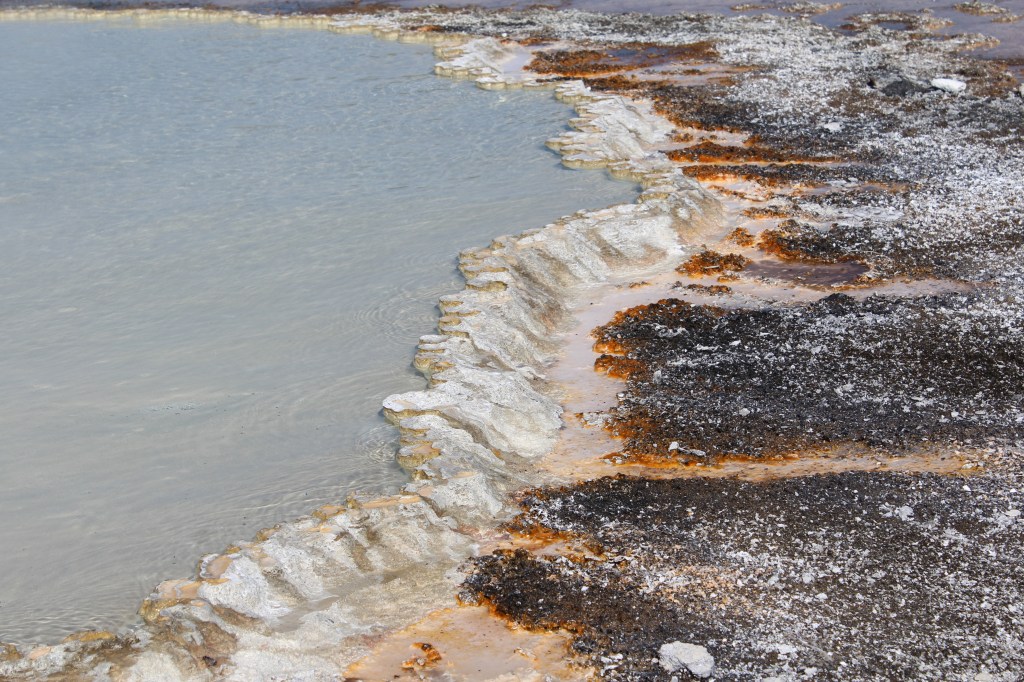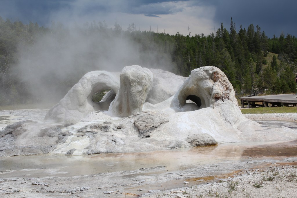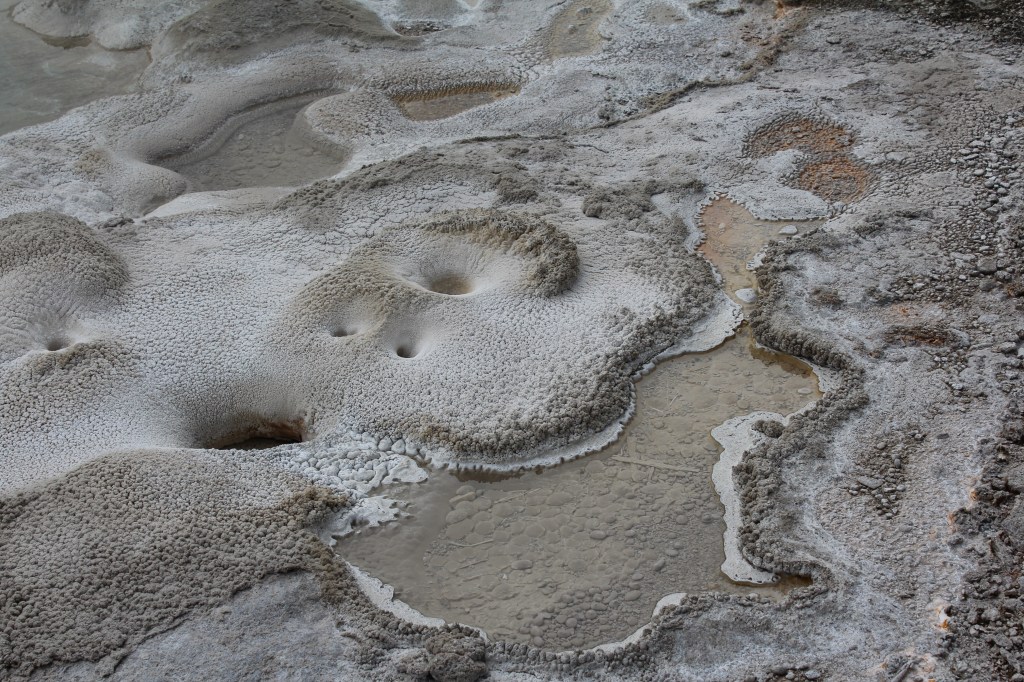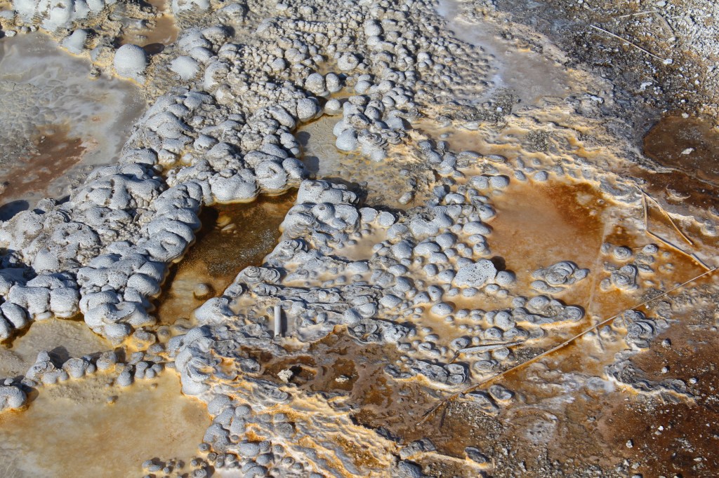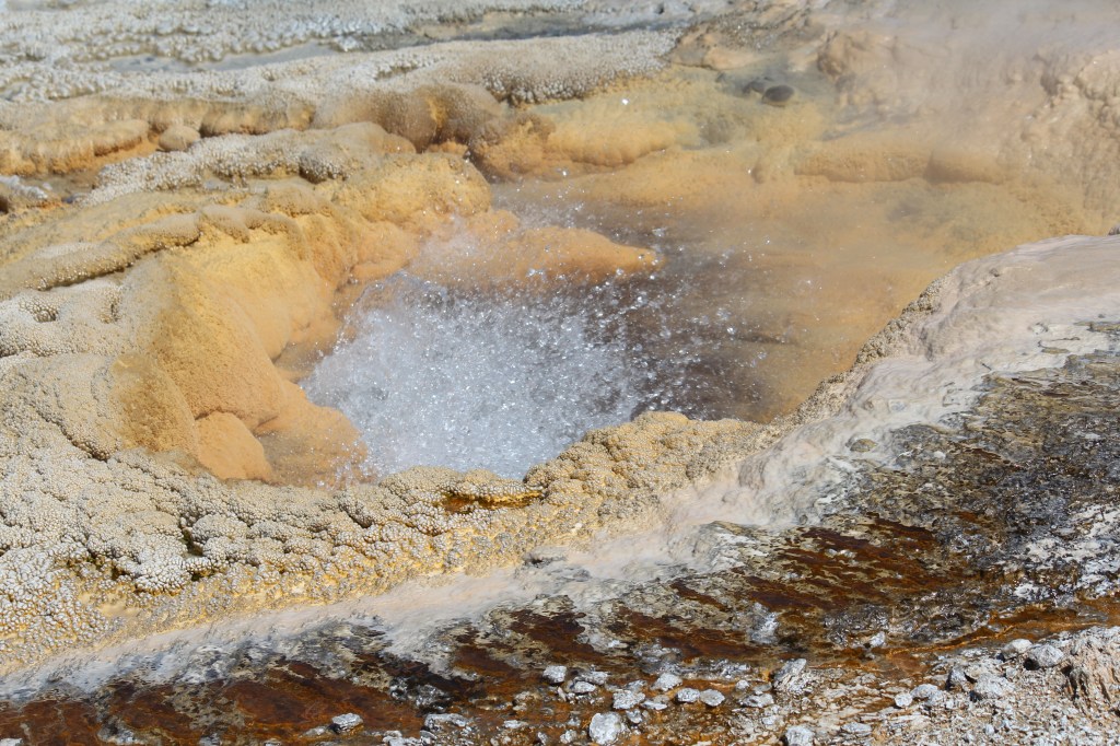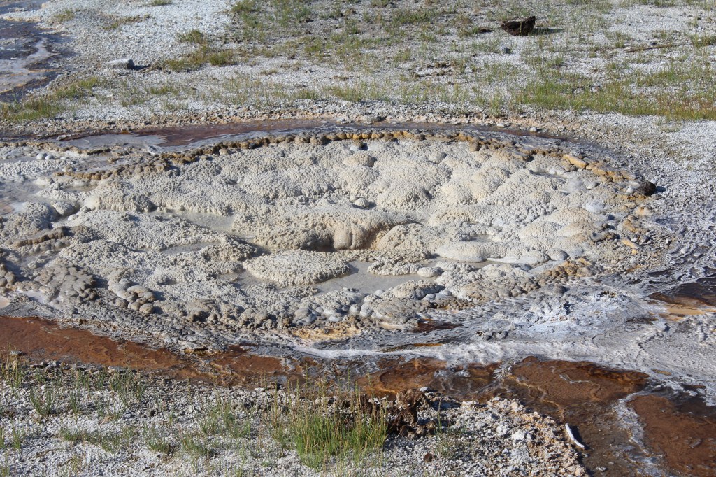 Minerals deposited by Anemone GeyserEmpty crater of Anemone Geyser (fills with water shortly before it erupts)Colorful bacteria and minerals form some interesting-looking stuff.Colorful bacteria and minerals form some interesting-looking stuff.Not as colorful as some of the other deposits, but still pretty interesting.Colorful bacteria and minerals form some interesting-looking stuff.The very bubbly Beach SpringThe aptly named Castle GeyserHe followed me home, then stole my car.This geothermal feature is known as Doublet Pool.As you can see, Doublet is an above-ground pool.This feature is known as Ear Spring. I SAID, “THIS FEATURE…” oh, never mind!Grotto Geyser doesn’t need to erupt – it’s just plain cool-looking.This geothermal feature is known as Heart Spring.This geothermal feature is known as Morning Glory Pool.Old Faithful viewed from Observation Point on a nearby mountainsideOld Faithful viewed from my hotel room at sunriseThis geothermal feature is known as Pump Geyser.More terraces formed by runoff from springs/geysersSedges (maybe rushes?) growing through the calcite depositsThis geothermal feature is known as Solitary Geyser.Floating biscuit in Solitary Geyser?Some of these colorful deposits left me craving orange sherbet.I didn’t catch the name of this feature.I didn’t catch the name of this feature., so I named it “Scream”.
