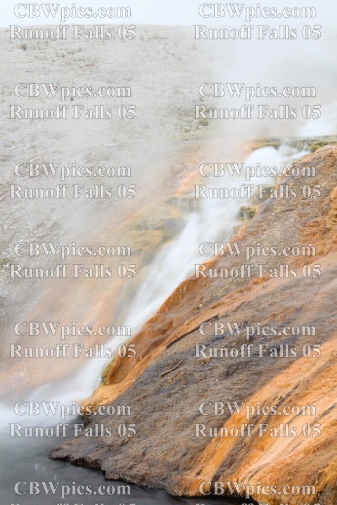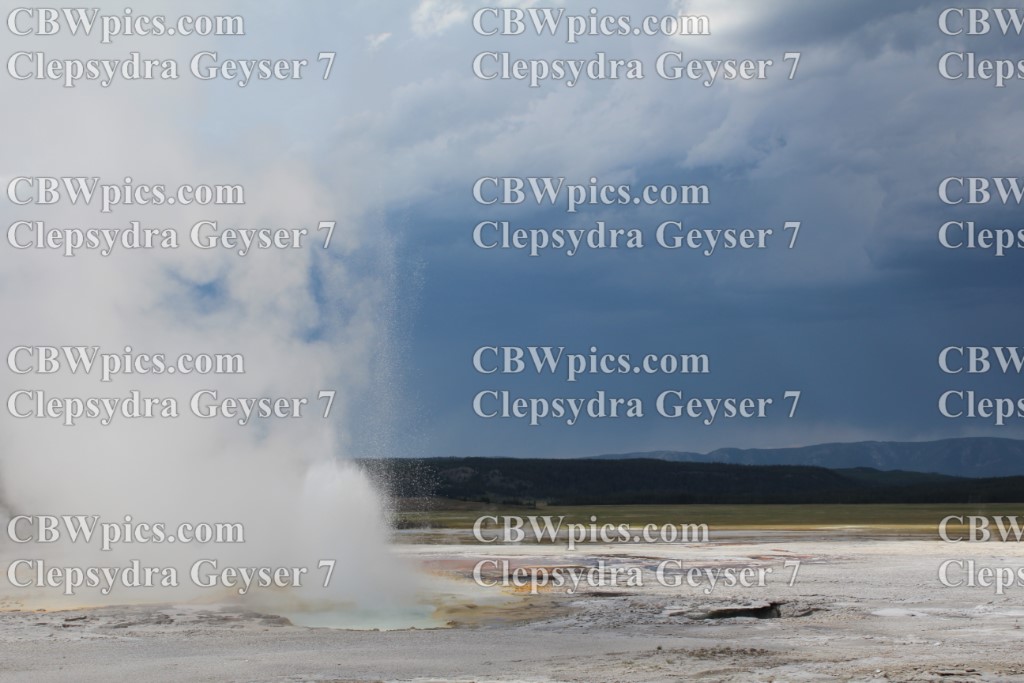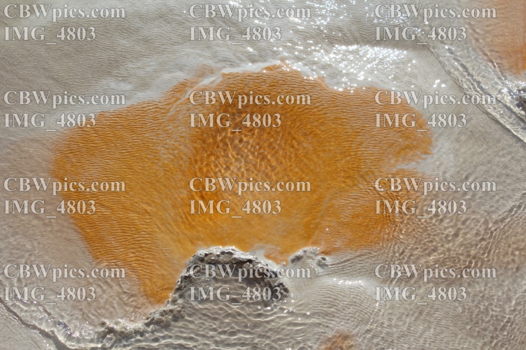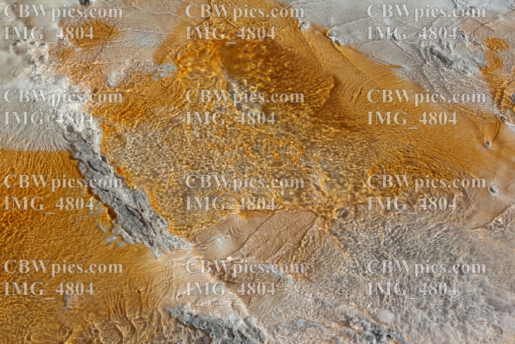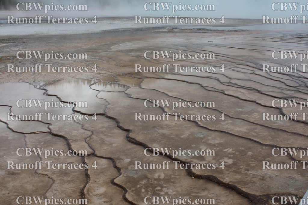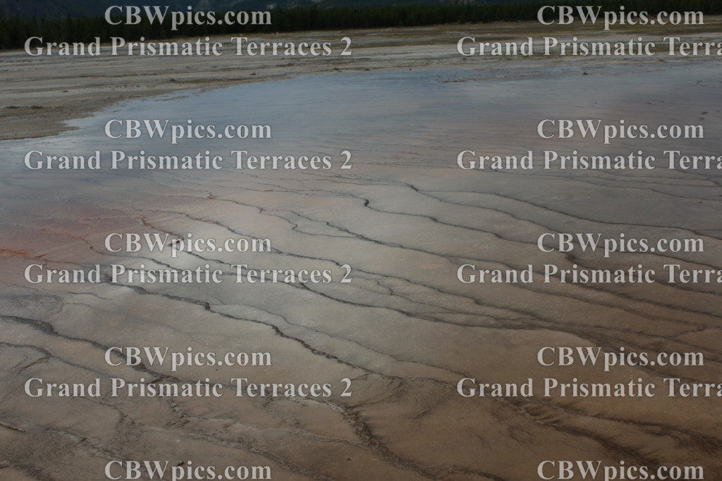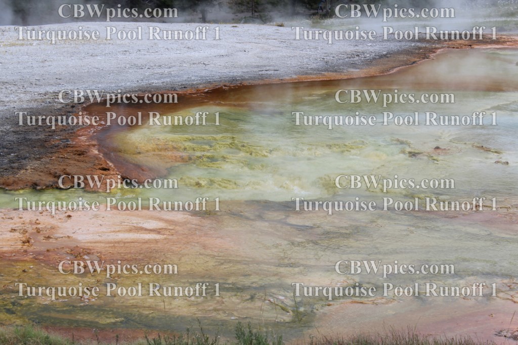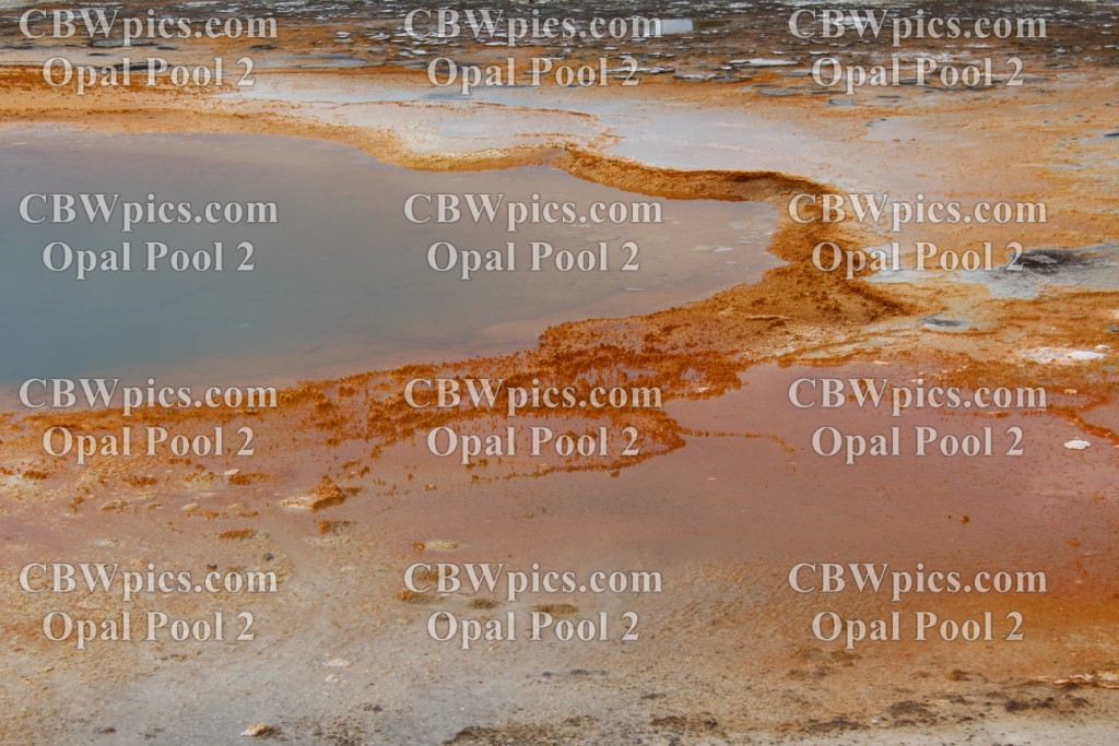 A “floater” in Excelsior Geyser CraterGetting a full view of Grand Prismatic Spring requires a separate hike to get above it. So this is all I got……OK, I also got terraces formed by runoff from Grand Prismatic Spring.These weird little orange formations at the edge of Opal Pool were interesting.Steaming waterfall – water pouring down from the various geothermal featuresMore runoff terracesTurquoise Pool is turquoise-colored in the middle……but not at its edges.Striking visual contrast between storm clouds and the calcite-laden soilMidway Geyser Basin, Yellowstone National Park (photographed August 3, 2020)
