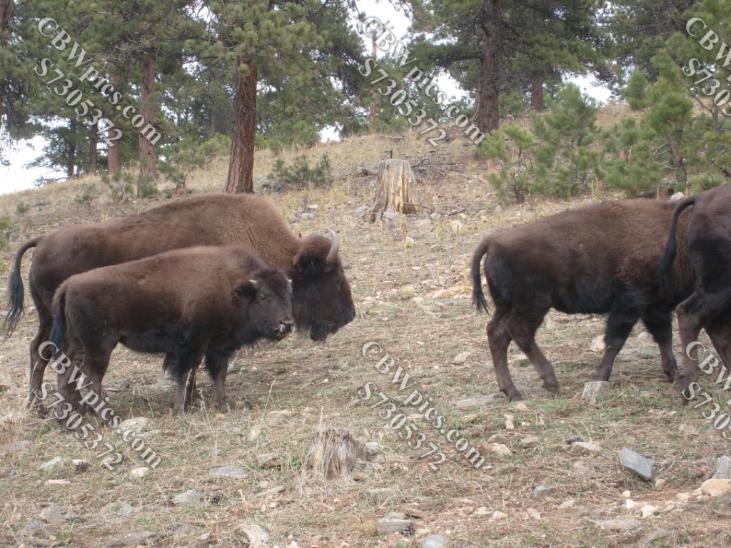 First stop: Gennessee Park, home of the Interstate 70 bison herd. No zoom here; just a bison-proof (I hope) fence – a nice close encounter.Baby BisonThe herdBison on the right, continental divide in the distance, and a No Ambulatory Humans sign.