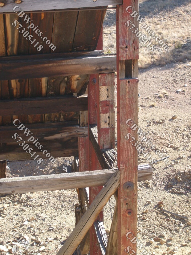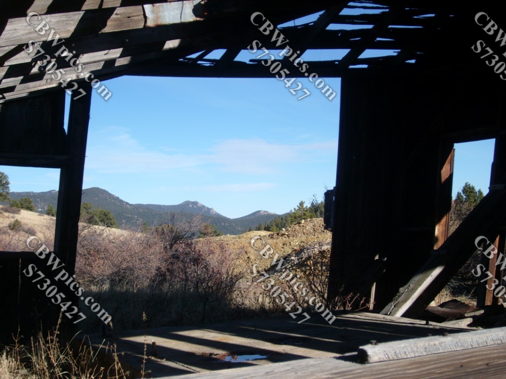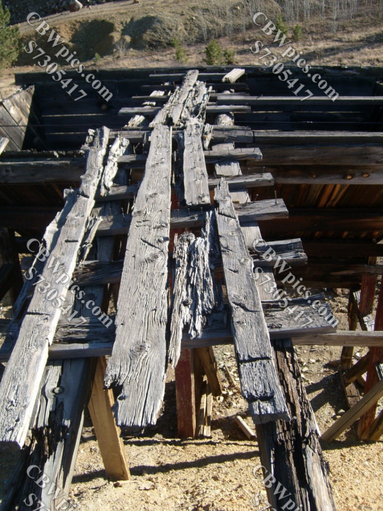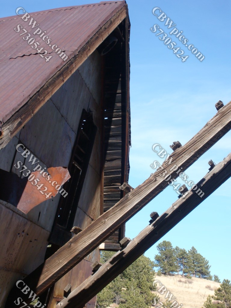 The parkway mostly passes through ranch land. Here’s a livestock pen.As you approach Central City, you go from ranches to mining areas.Big ol’ gold mineI believe this was called the Meeker-Success Mine (MSM).Tipple at MSM, with wood retaining fence underneath, still doing its job.Whoa! The ore cart “bridge” is still in place at the back.Looking up through one of the tipple’s two gold ore hoppers.Ore carts (mine cars) once crossed this bridge. Rails are long gone.I was amazed how much red paint there still is on the tipple.The MSM hoisthouse and headframeThe headframe is remarkably intact – even the ladder looks good.MSM hoisthouseThe view through the hoisthouse (not much is left of the sides)It seems the hoisthouse wants to collapse, but headframe won’t let it.Despite the state of its sides, the front of the hoisthouse still looks OK.Mine shaft entrance, clearly sealed in modern times. “Hatch” still “open” on the left, still on its hinges.View from the Meeker-Success MineWe have moved a little closer to the continental divide.A final look down on MSMAnother old hoisthouse, this one a little closer to BlackhawkThis hoisthouse’s headframe has been torn down……and now lies beside the hoisthouse.This building is in much better shape than the MSM hoisthouse.Looking down at what appears to be the Hidee Mine.Big ol’ building at the Hidee MineSometimes I feel like I’m beatin’ a dead house…