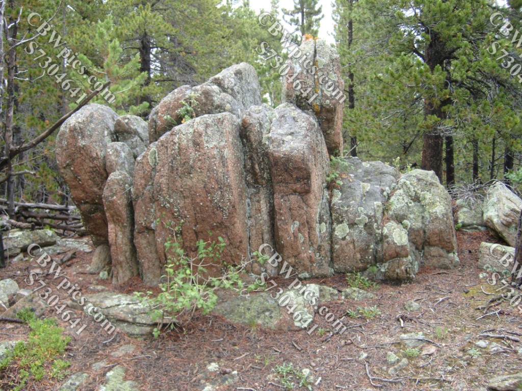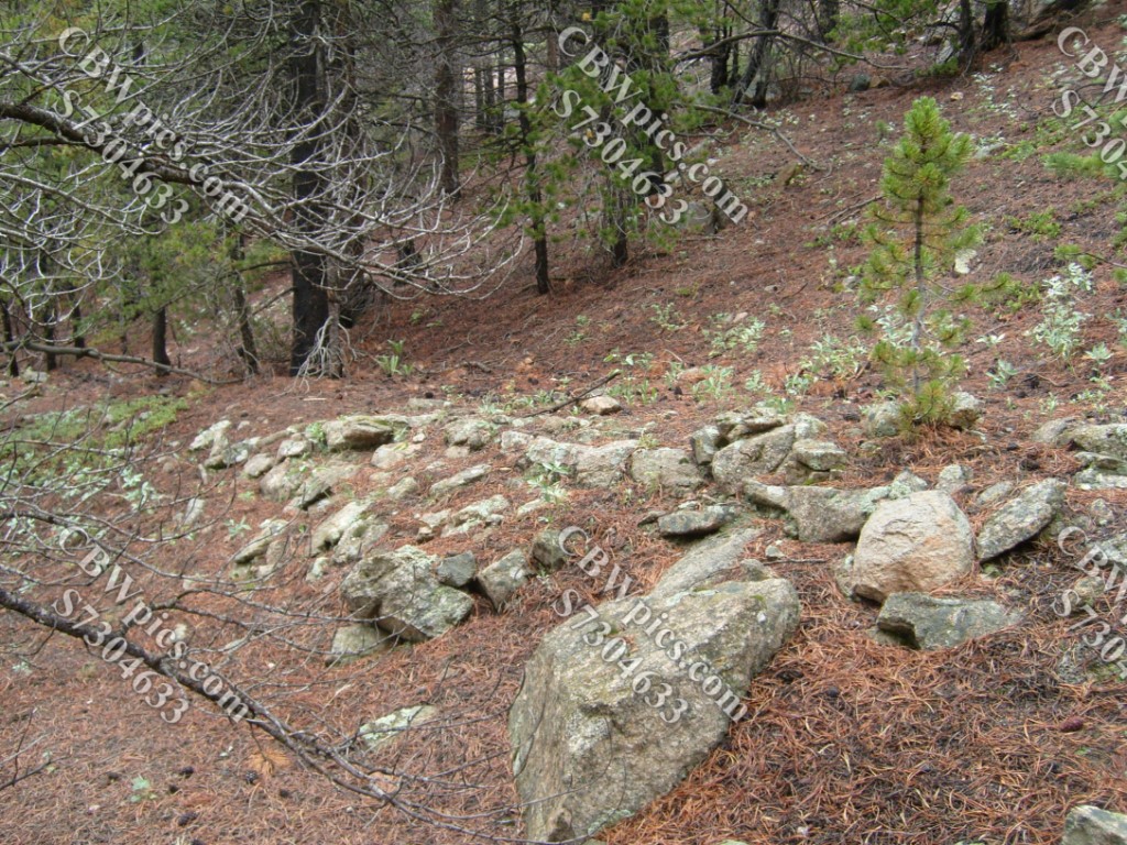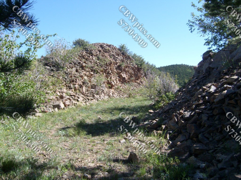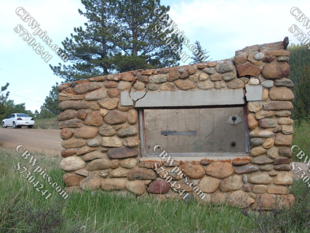 My next stop was at one of the many places where the current highway cuts into a mountain as it rounds a bend. I walked down the embankment, hoping to find another small stretch of old alignment. What I found was the most primitive (and thus I assume oldest) bit o’ road I had yet found along the Peak to Peak. I would bet this road predates the 1918 designation of the scenic byway. I followed this long-abandoned road, and it led me to a whole new world of mystery! Well, OK. It wasn’t THAT big. More like a small neighborhood of mystery. But check it all out: