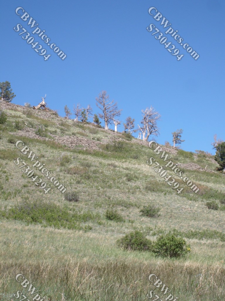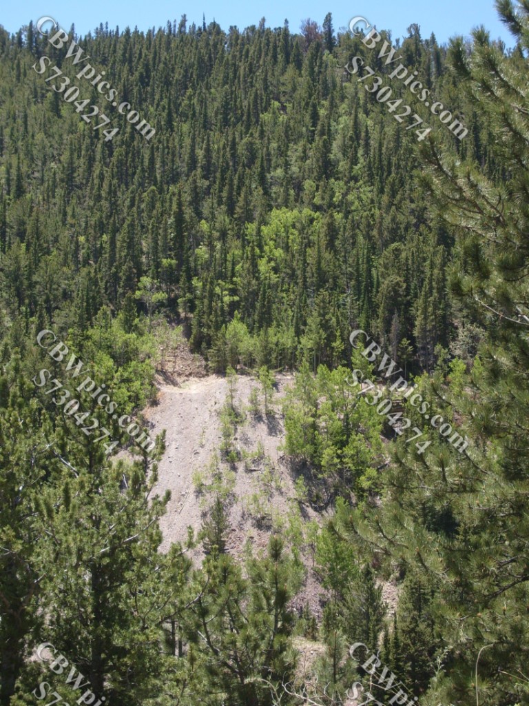 We now find ourselves directly across a small valley from a mountain known as Grassy Top. If the name Grassy Top sounds familiar, it may be because I’ve brought you here before. As you may and/or mayn’t recall, the slopes of Grassy Top once hosted part of the “Switzerland Trail” – a.k.a. the Colorado & Northwestern Railway, which ran from Boulder to Ward, Colorado. This railroad officially went out of business in 1920. As long as we’re here, let’s take another look at ol’ Grassy Top: