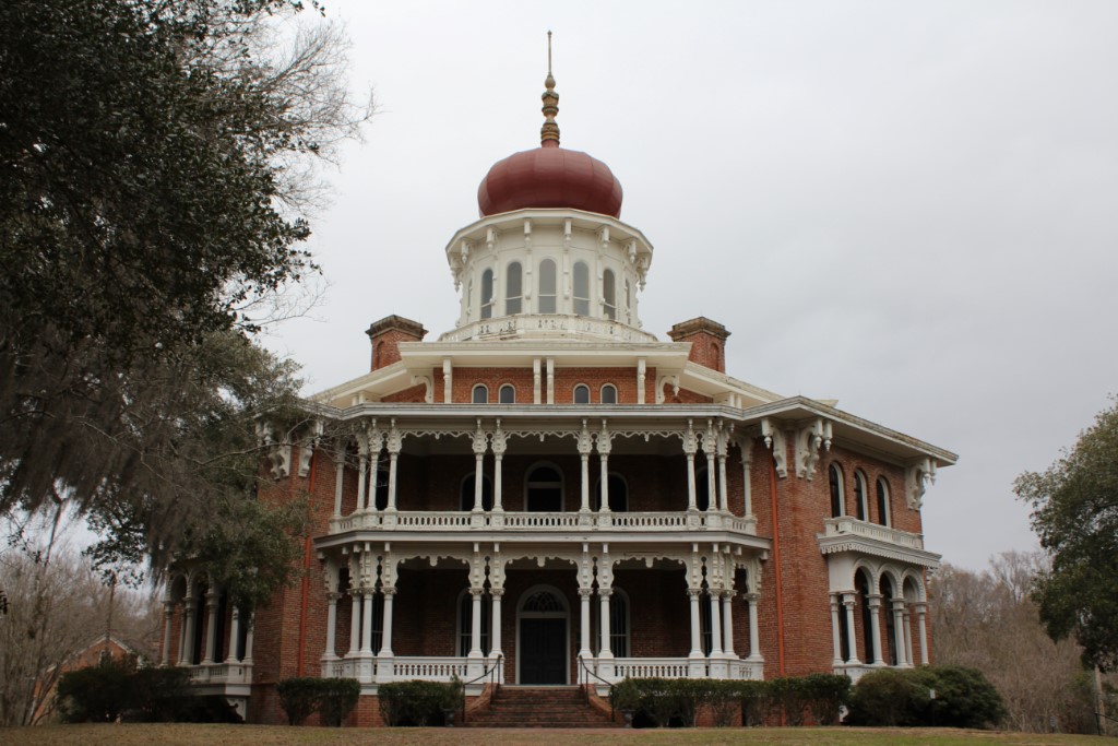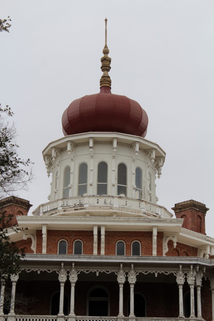 And now for something completely different: A mansion with eight sides. I have mentioned in previous posts that I seem to be getting tired of historic mansion tours, possibly (in part) because I feel like they each show similar stuff and I’ve seen it all before. Longwood, in Natchez, Mississippi, promised to be unique for multiple reasons: (1) The house is octagonal, (2) it was never finished, and (3) it sounds like it was named by Beavis and Butt-Head. Longwood delivered on its promise – this was indeed a most interesting and unique mansion tour. Construction started in 1860. Most of the construction materials and the vast majority of the many master craftsmen employed in the construction were brought in from Pennsylvania. When the Civil War began, the master craftsmen left for home, and the shipments of additional construction materials were halted by Union blockades. At this point, the external walls and roof of the house were completed, but the interior rooms and the upper floors (this was intended to be a SIX-story house) had not been filled in. The “basement” was the only inhabitable part of the house. But, the basement by itself had over 10,000 square feet of floor space. BUT but, they had 11 children. So, maybe 10,000 ft2 actually wasn’t enough space. In any event, the family moved into the basement. And stayed there. The war caused the family to fall into financial ruin, so construction on the house was never resumed.