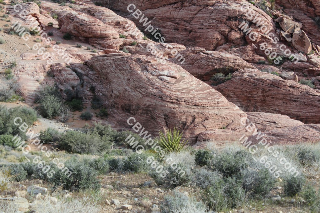 After the Calico Hills, all the remaining stops provide views of the same set of mountains, from varying distances and angles. And desert vegetation. I was struck by the fact there are no saguaro cactus. It’s mostly a mix of yucca, cholla, and sagebrush. There are also signs at all the stops, telling you to check under your car for tortoises before backing out. But I saw no tortoises; I just saw all this stuff: