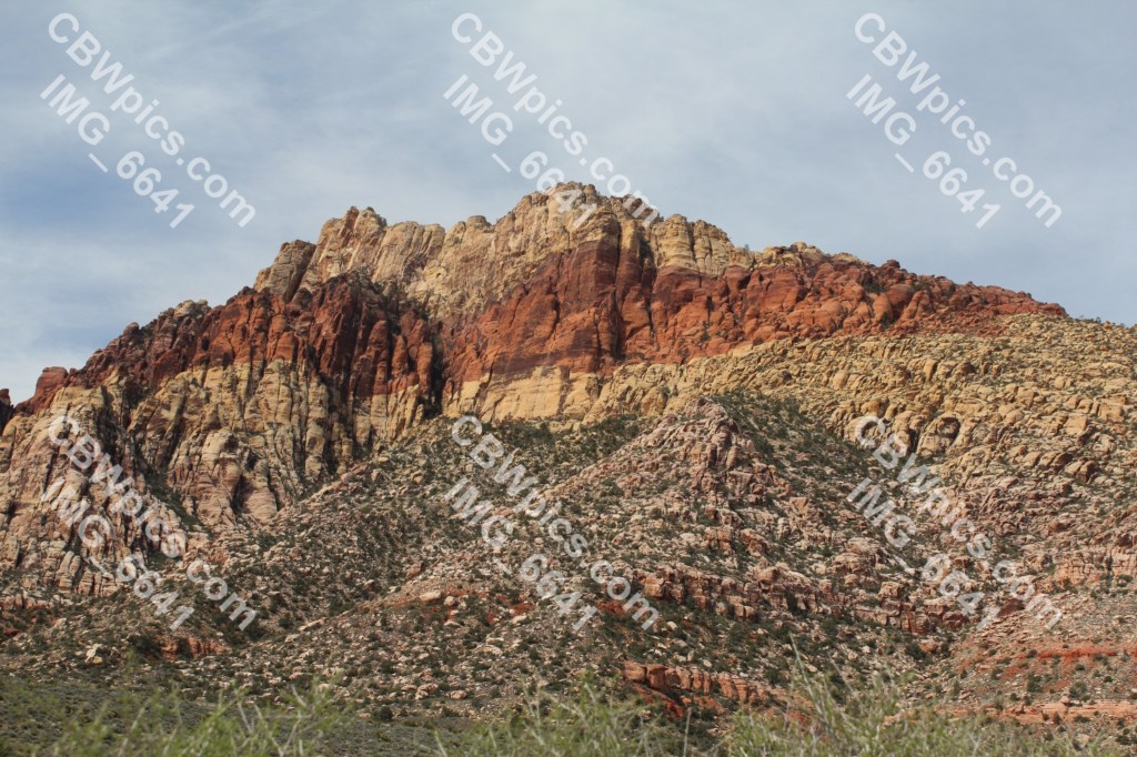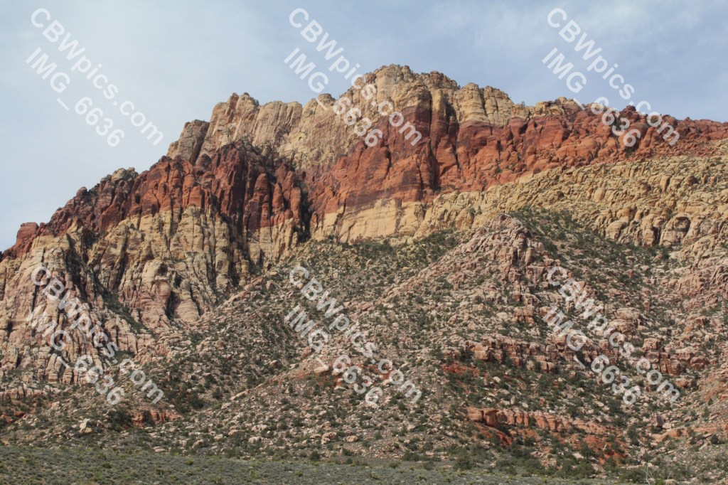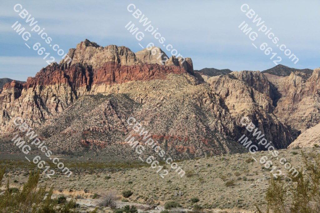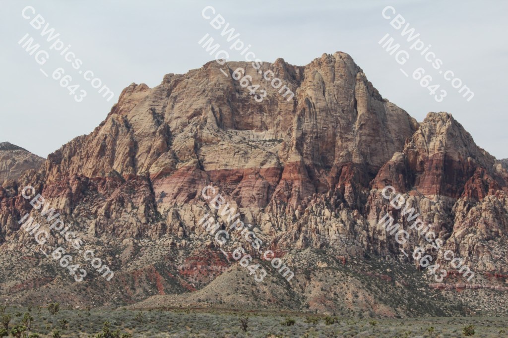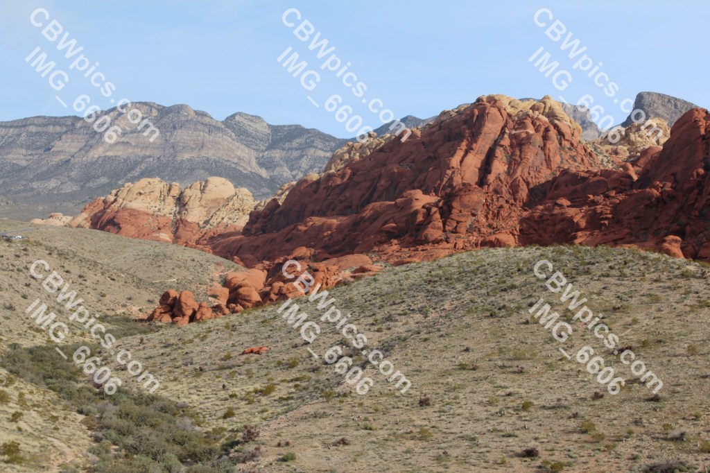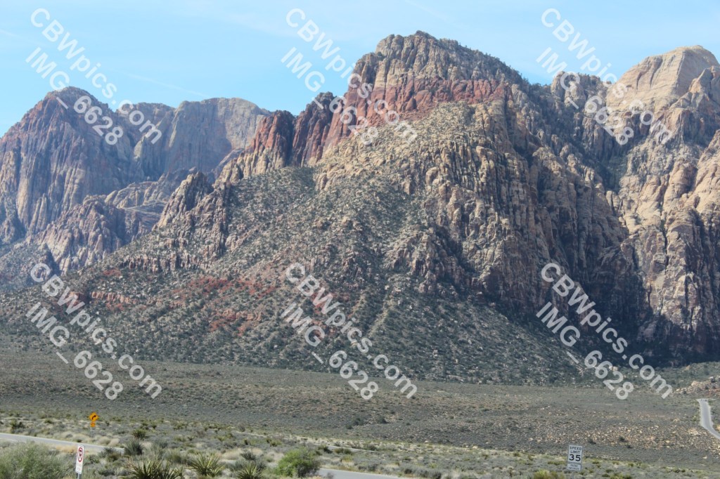 Another night of very little sleep. This was largely due to a lack of soundproofing in the Strat Hotel tower, mixed with the fact that people are comin’ and goin’ at all hours in Las Vegas. So, I tried to get a few winks in before I had to leave. This worked too well, as I ended up leaving later than I had intended, which meant I nearly missed my admission window for Red Rock Canyon. This particular Red Rock Canyon is located about 15 miles southwest of Las Vegas, and is not to be confused with Red Rock Canyon Open Space in Colorado Springs. In fact, it shouldn’t even be confused with a canyon. Upon my arrival, I quickly noticed that this “Red Rock Canyon” is actually a broad valley, bordered on one side by a very steep mountain range, and on the other by a huge but gently sloping hogback.