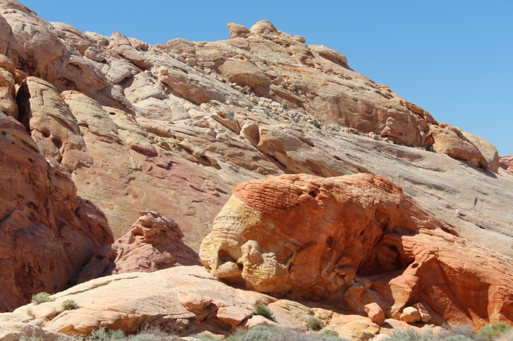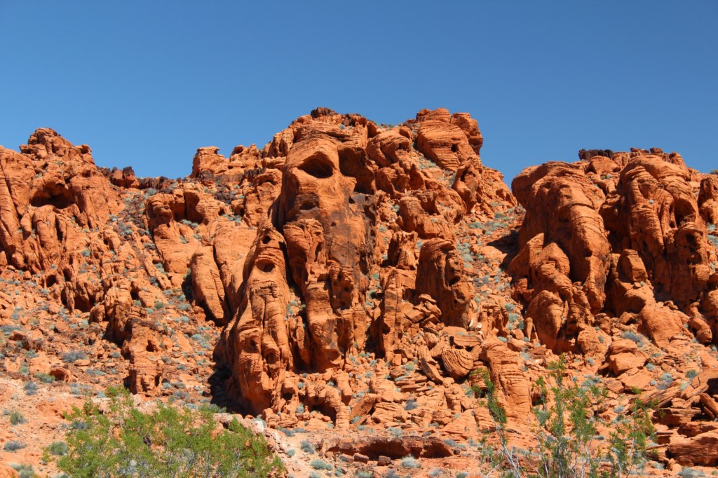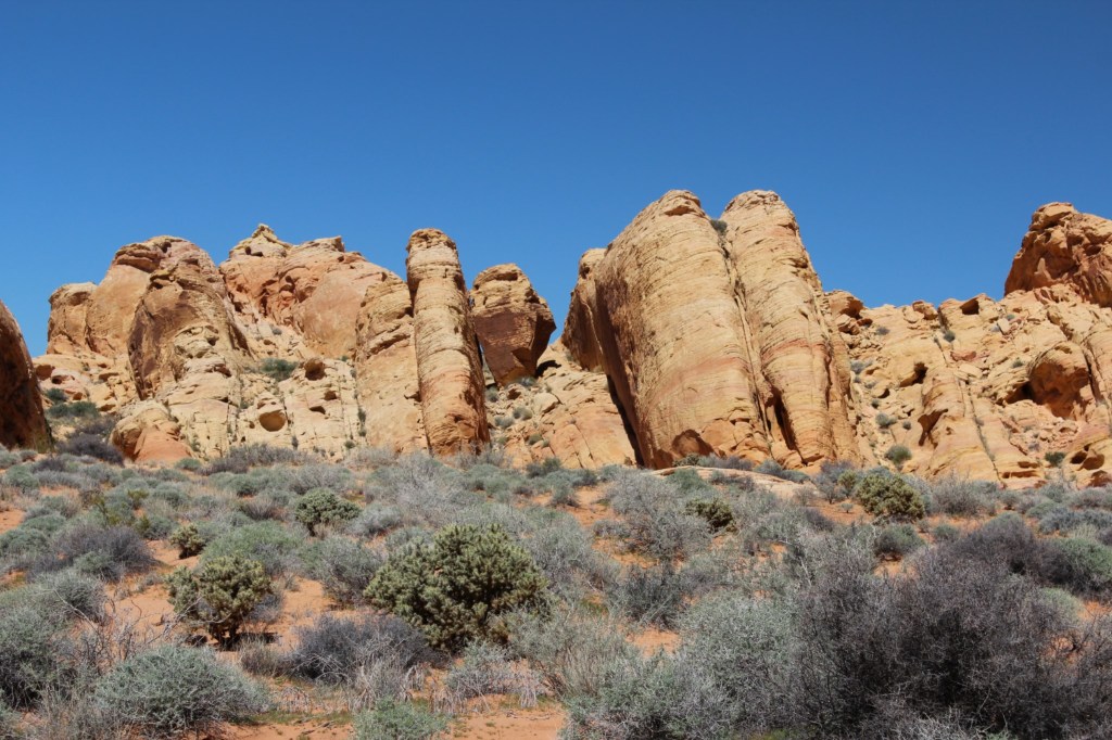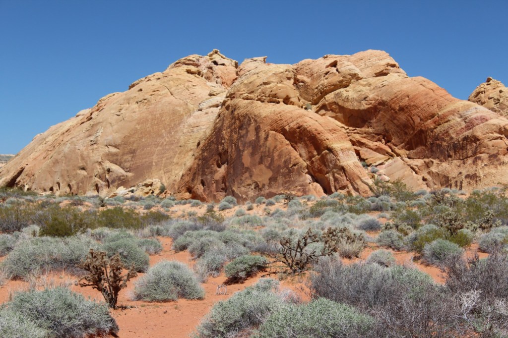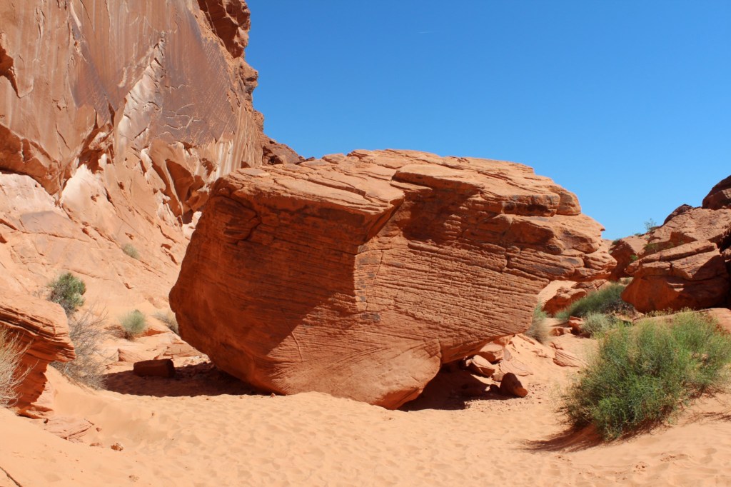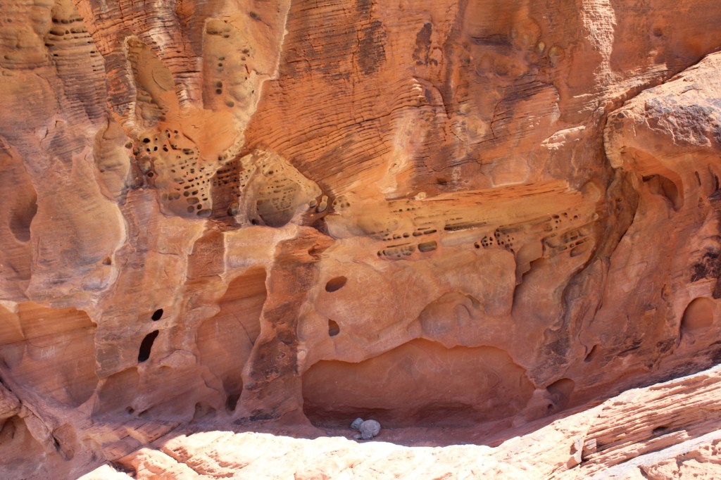 There ya have it, folks: Nevada’s Valley of Fire State Park. I definitely recommend checking this place out for yourself. The trails I hiked are alternately rocky or sandy, meaning the footing is pretty rough, so I probably would not recommend the hikes to many of the Parkinson’s patients I know. But there’s plenty that can be seen from your car, so get out there and visit the Valley o’ Fire! Just don’t go during the summer. Or you will die.