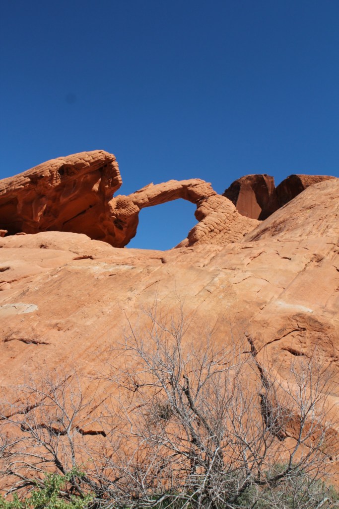 You may have noticed that I’m not putting watermarks on these photos. According to the Nevada State Parks website (and signs posted in the park), you have to purchase a permit in order to do any commercial photography in their parks. Since I didn’t feel like purchasing a permit, the pictures I took inside the park must be free or just plain personal use only. And since that’s the case, there’s no point in me protecting them against unauthorized copying. I still shrunk ’em though, to keep the /file sizes low on the server. That’s said, here’s an arch…