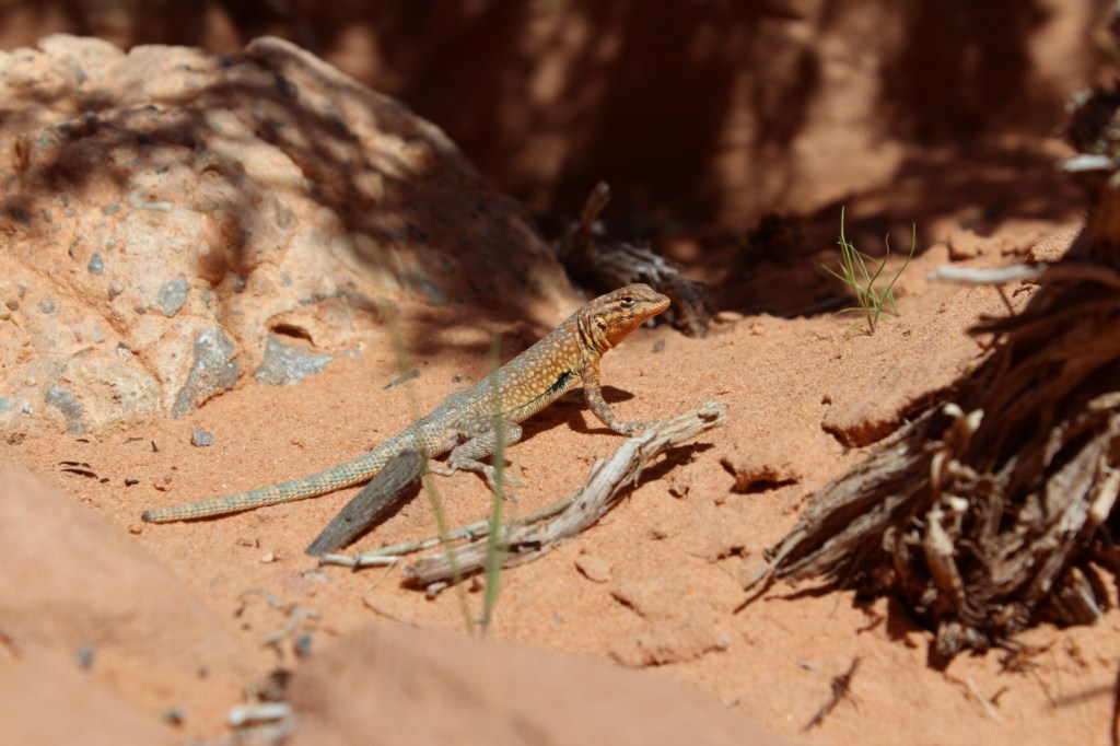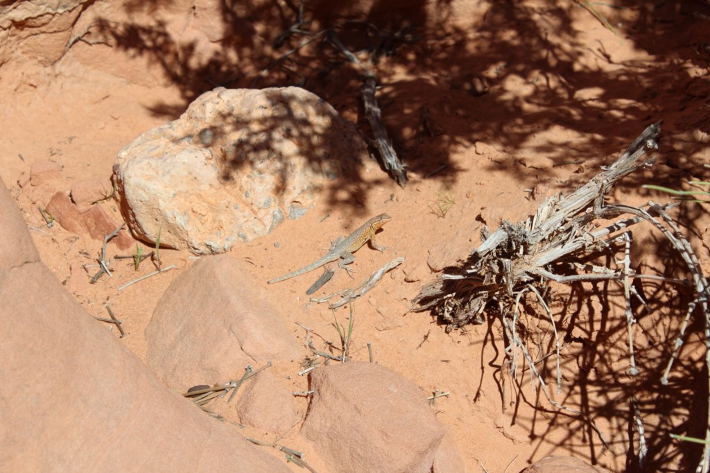 After a quick lunch from my pic-a-nic basket, I looked over the park brochure that I had obtained at the fee station, and decided my next stop would be the trail known as Rainbow Vista. This trail ends at an overlook with a view looking down into a small canyon; it’s definitely an example of that old adage, “getting there is [at least] half the fun.” Y’see, I found the view at the end of the trail isn’t really worth the walk, but the stuff you see along the way is totally worth it! Let’s see what I saw: