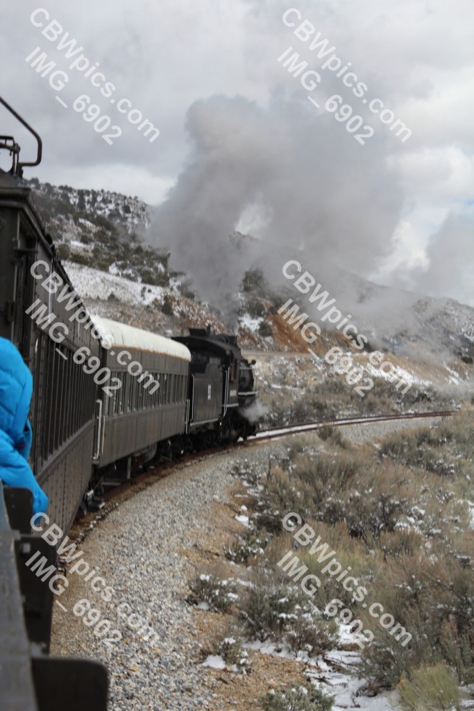 This train ride did not have assigned seats. I sat down at the first available window seat to enjoy the ride out of town. Despite the cold weather, I did what I always do on historic train rides: when we reached the end of the line and turned around, I moved to the open-air car to get better pictures, like these: