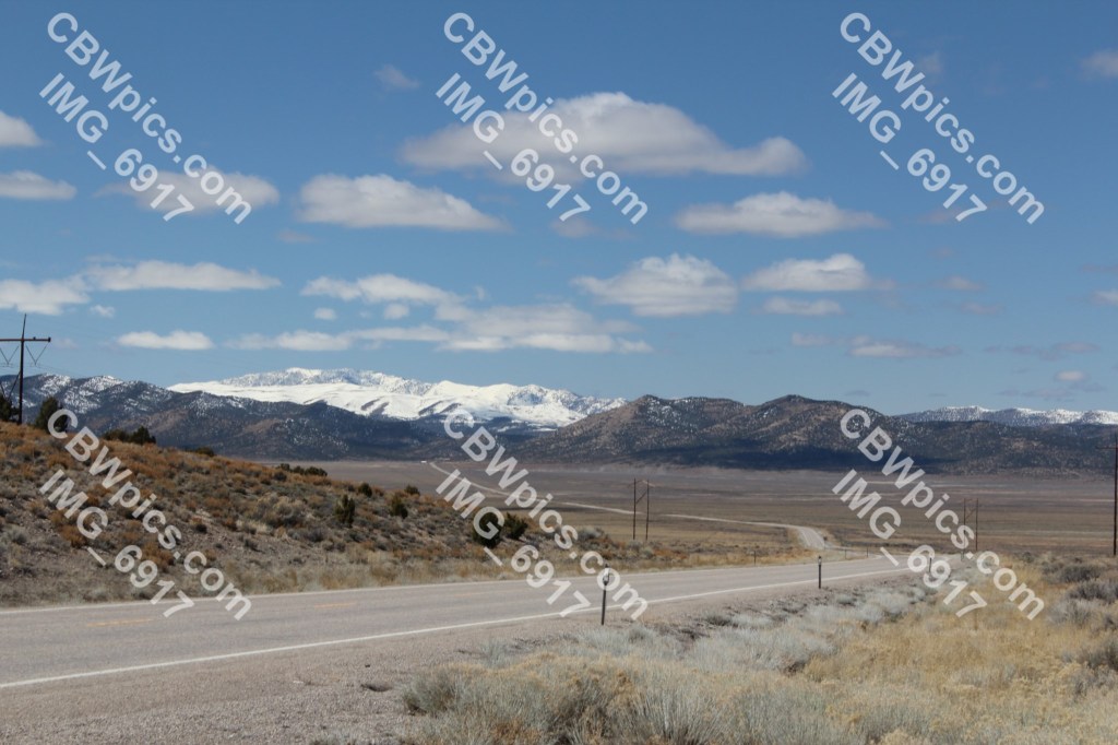 It wasn’t long before I noticed some repetition in the scenery. This portion of Nevada has several parallel mountain ranges, and each range is separated from the next by a low, flat, wide desert plain. The drive is basically this: