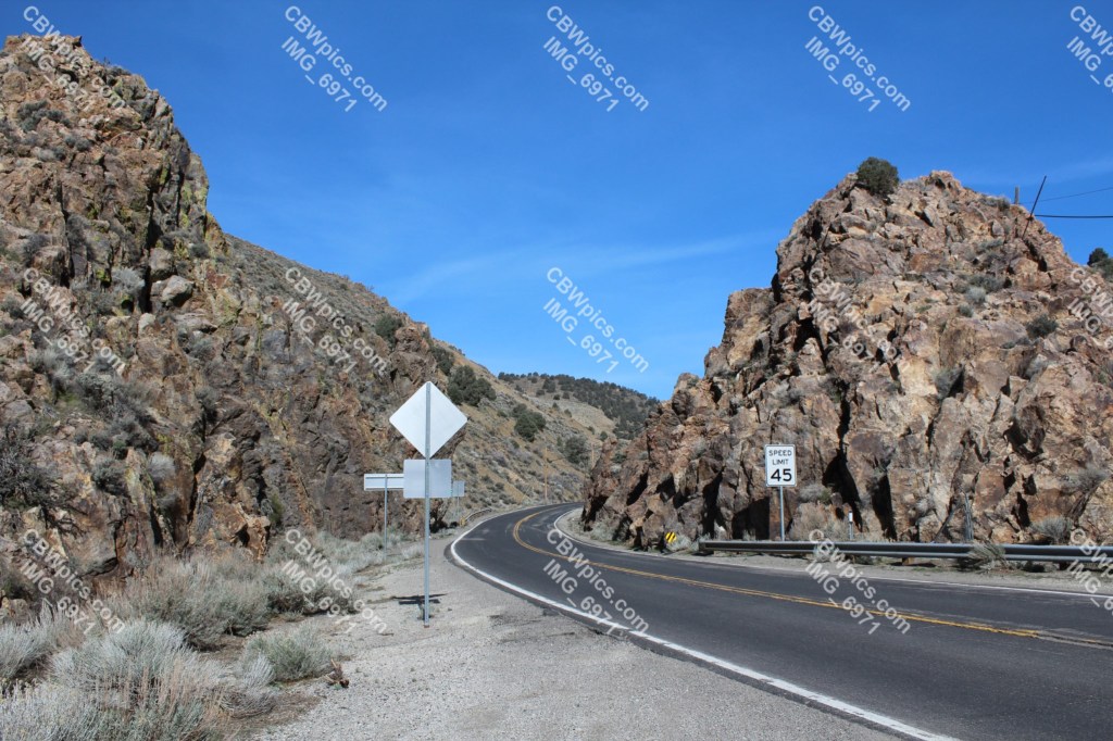 That’s it for the Comstock Lode. Next, I continued northish on the same highway. After it gets around the crest of the mountain range, it’s a VERY long drop into Reno. Consistent with the rest of the state, there’s no forest on the mountainside, just sagebrush and the like. So, this long drop offers excellent views of Reno and the Sierra Nevada range. I couldn’t help but notice, way off in the distance, what looked to be a huge concrete arch bridge. It appeared to be part of Interstate 580, but by the time I spotted it, I just wanted to get checked into my Reno hotel and find something to eat. But I vowed that I would find and photograph that bridge before leaving Nevada. Stay tuned to find out whether I was successful…