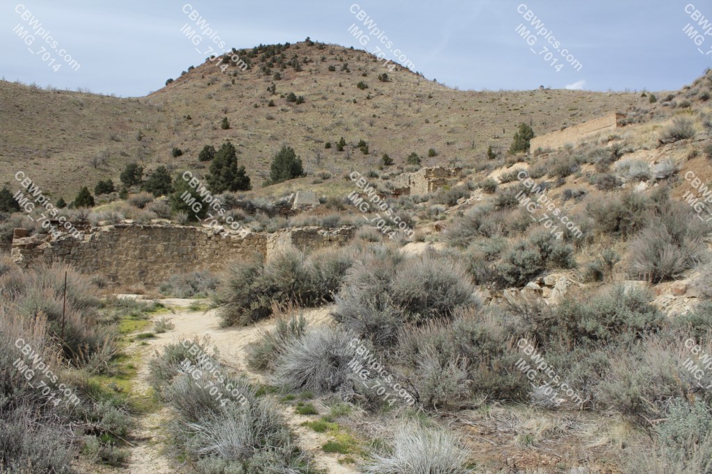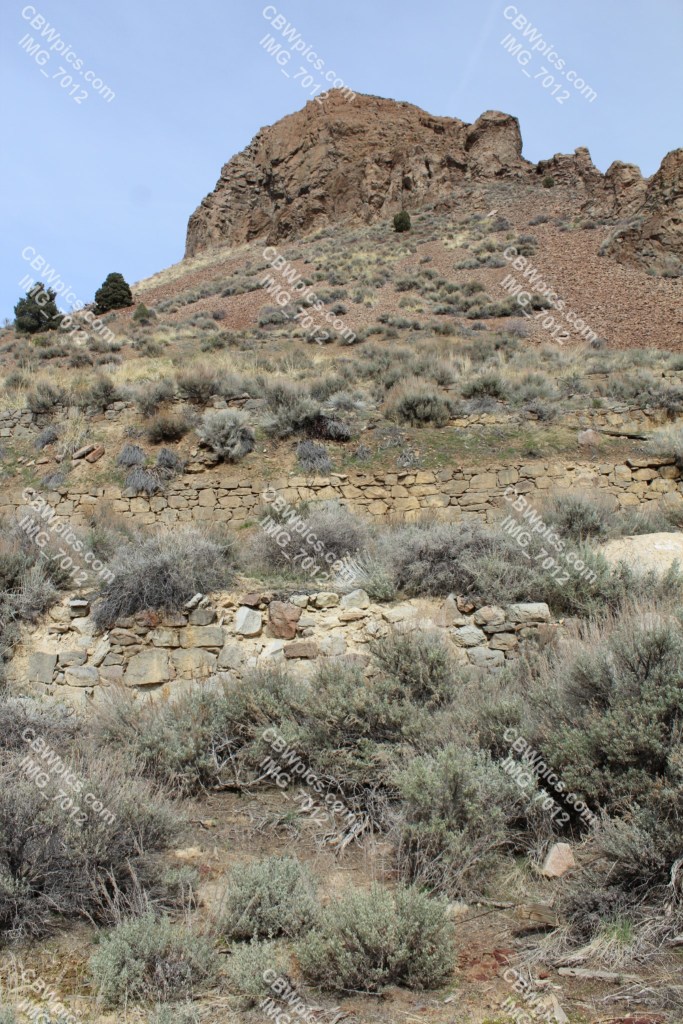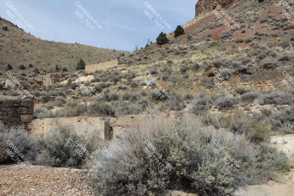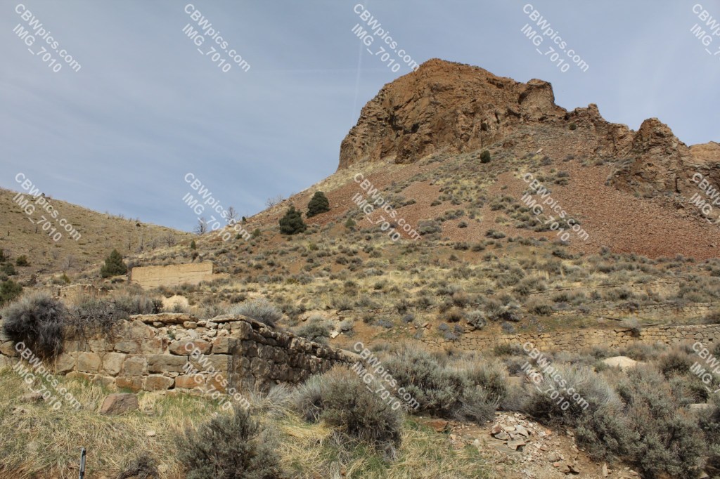 As you can see, this is a beautiful view now, but it may not have been that way 100 years ago. Y’see, I drove a little way down the canyon and ended up getting up close and personal with the big rock. At the base of the rock are the ruins of what looked to have been a pretty sizeable ore mill. So the spectacular view that dominates today may well have been obscured by smoke and/or steam. Here’s what I found: