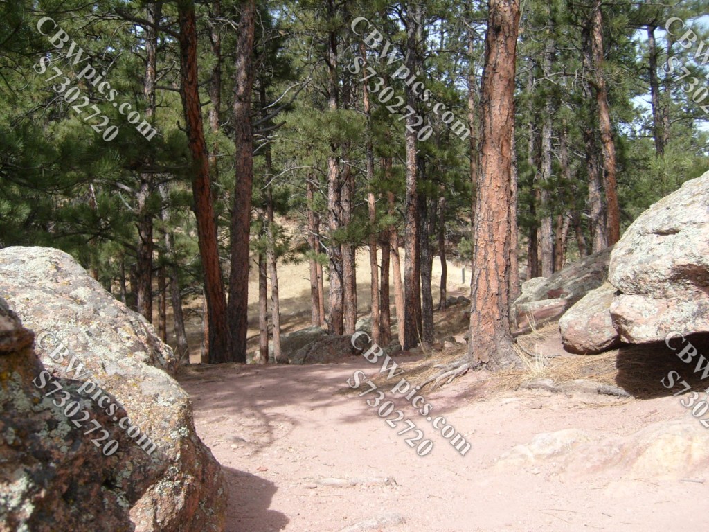 Flagstaff Trail rises about 1 kilofoot (from 5,800 feet to 6,800 feet) over a length of approximately 2.5 miles. This is not, by Colorado standards, a difficult trail. But it’s not inordinately easy, either. If you have Parkinson’s or otherwise are unsure of your hiking abilities, I wouldn’t recommend trying to hike it all at once. I would suggest driving up Flagstaff Road until you get to the crosswalks. Then you can try walking a short distance up and/or down the trail, which allows you to enjoy the mountain pine forest even if you can’t walk very far.