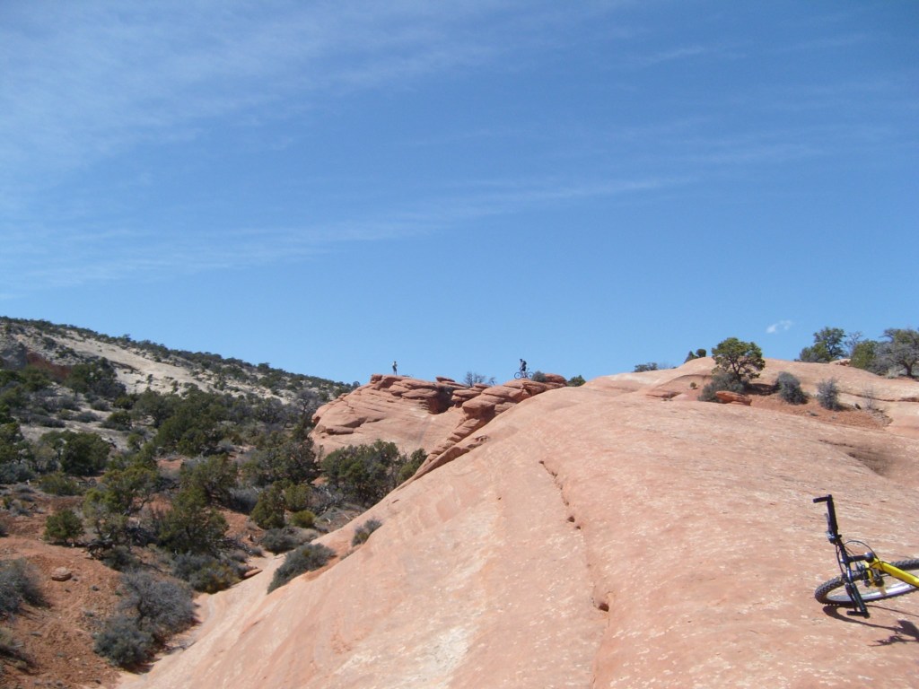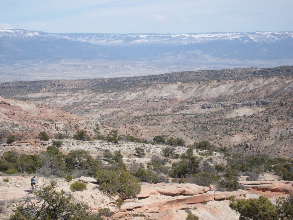 After the Mica Mine, we decided to call it a day. A Saturday, specifically. Then, on Sunday morning, we biked Rabbit Valley (right next to Interstate 70, less than two miles from the Utah border). On our way uphill, we ran headlong into a strong, dusty wind. This was not good photography weather. On our way back down, we were moving WAY fast, and I was enjoying the speed too much to stop and take pictures. So, my only pictures from this ride are from the overlook at the top, where we stopped to enjoy the view and rest for a long while…