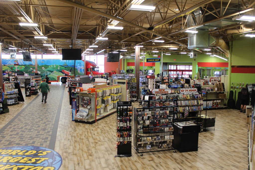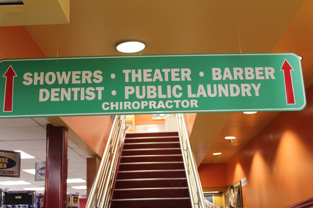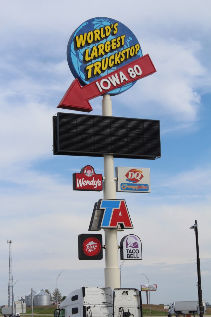 I’ve been hearing about Iowa 80, the “World’s Largest Truck Stop” from a few sources for some time now, but it didn’t sound like anything that would interest me. Until I found out there’s a trucking museum on the property. Then it was promptly added to my itinerary. My notes say the museum is open every day, but when I actually arrived at the museum entrance, I found that it’s closed Mondays and Tuesdays; and it was a Monday. So, with tears in my eyes and a bottle of brass monkey in my pocket, I wandered over to the truck stop proper, where I got the following pics…