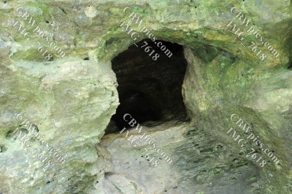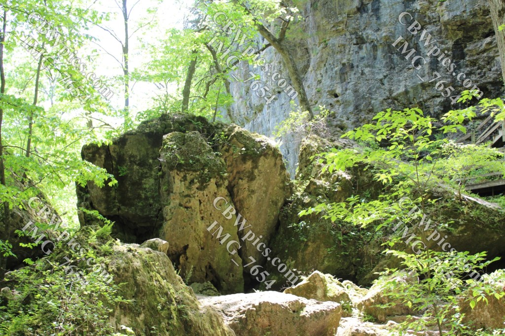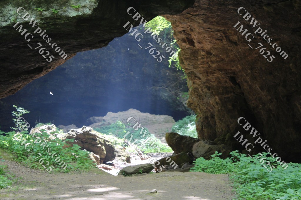 This box canyon, like many places in the park, was teeming with tiny cliff-dwelling boids. I’m thinking they were mostly chimney swifts, but they refused to show me ID. At the low end of the box canyon is the Upper Dancehall Cave Entrance. Dancehall Cave is the only cave in which there is a paved walkway as well as being the only cave with lights installed. But as luck would have it, when I was about 50 feet into the cave (and having to bend myself due to the low ceiling), the lights went out! I spent a few minutes dancing around to see if the lights were motion-activated. Apparently, they weren’t. I considered forging ahead using my phone’s flashlight function, but the small amount of light it provided was virtually worthless. Luckily, the cave entrance is wide enough that I had just enough light to get back out. From there, I hiked overland to reach the Middle Dancehall Cave Entrance. Here’s what I done seen thar…