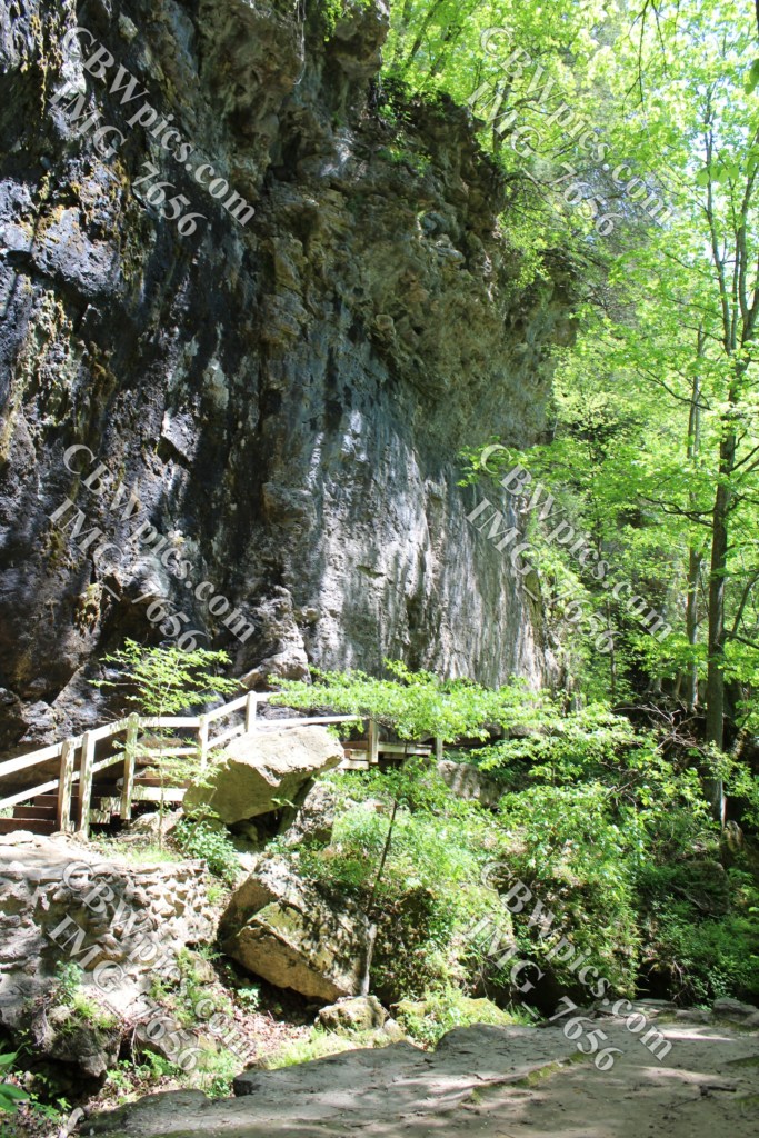 After the disappointment of the caves thus far, and the appointment of the cliffs / bluffs, I reached the park’s “natural bridge”. This particular rock formation not only provides a creek crossing for those walking over it, but also provides a dramatic gateway into a breathtaking box canyon for those walking under it. Have a look-see…