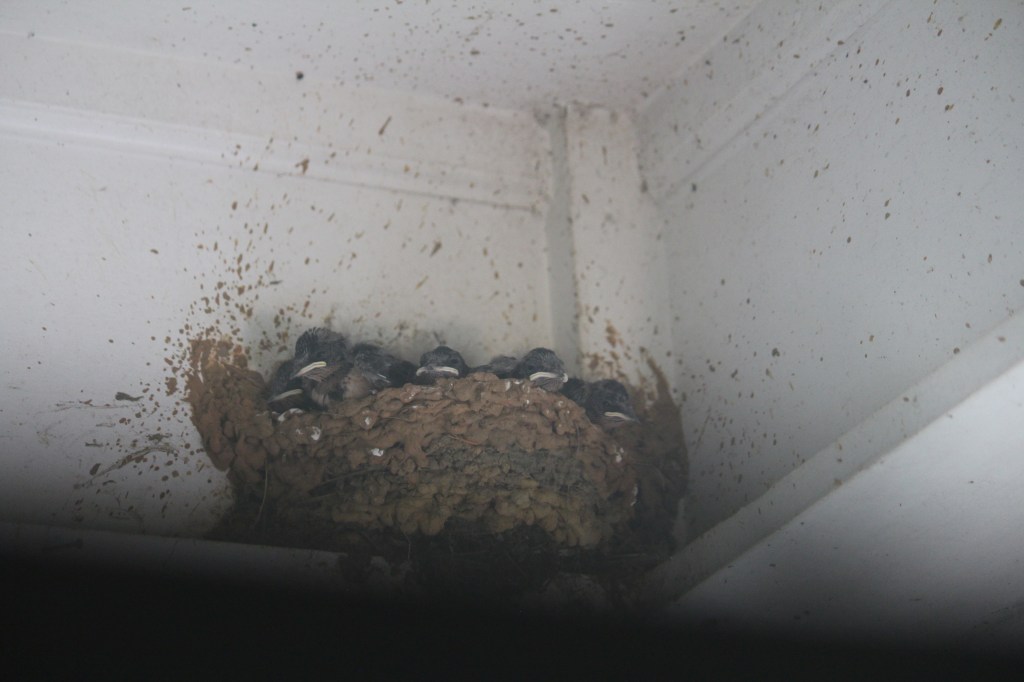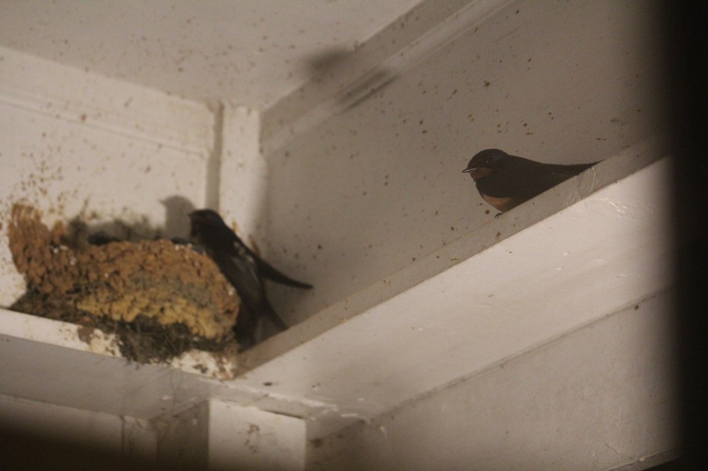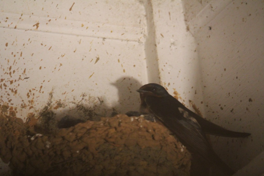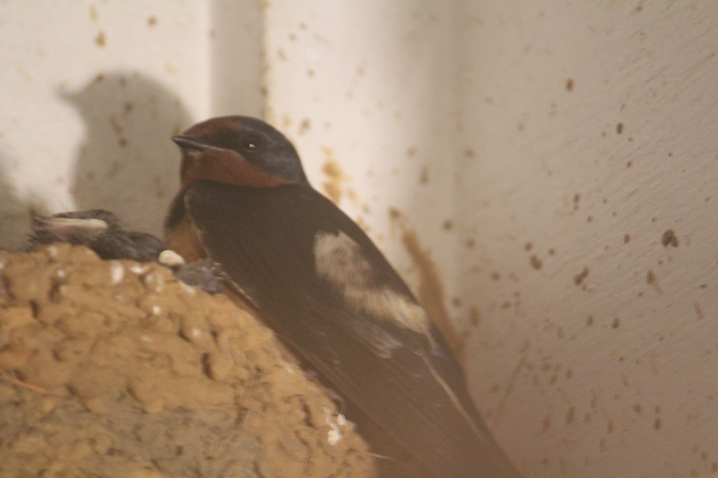 Meanwhile, at the front of the house, another little lady had already laid her eggs. This is a Barn Swallow (Hirundo rustica) who has built a mud nest at the top of my front stoopid.