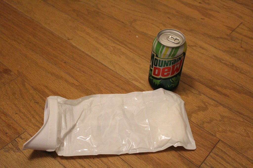 Nevertheless, I proceeded to put liquids into myself, knowing that I may have to “chase” Bear out of the bathroom. But by the time I had to go, Bear had already moved on to another room. So, let’s get started with the testing, shall we? No, not quite yet – settle down, DAMMIT! First, let’s take a look at the silly things. What exactly are these “urinals” that we are about to test? Well, take a look for yourself (12-oz soda can included to provide perspective):