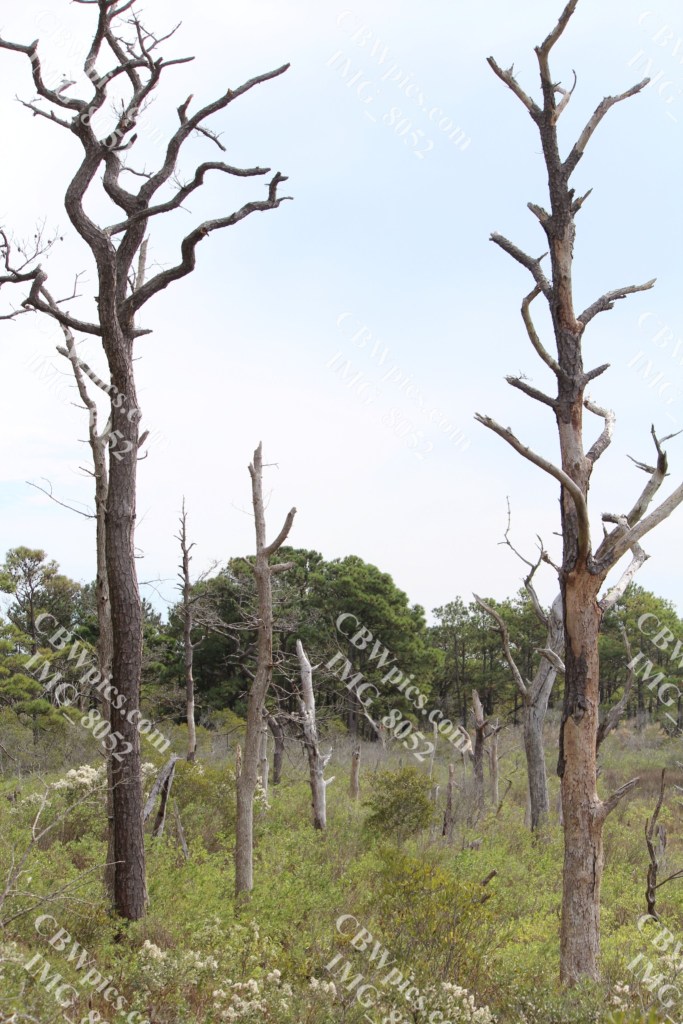 After observing the birds in the bays, I headed towards the “forested” interior of the island. Here, I found dead trees and a wild horse with a very itchy butt…